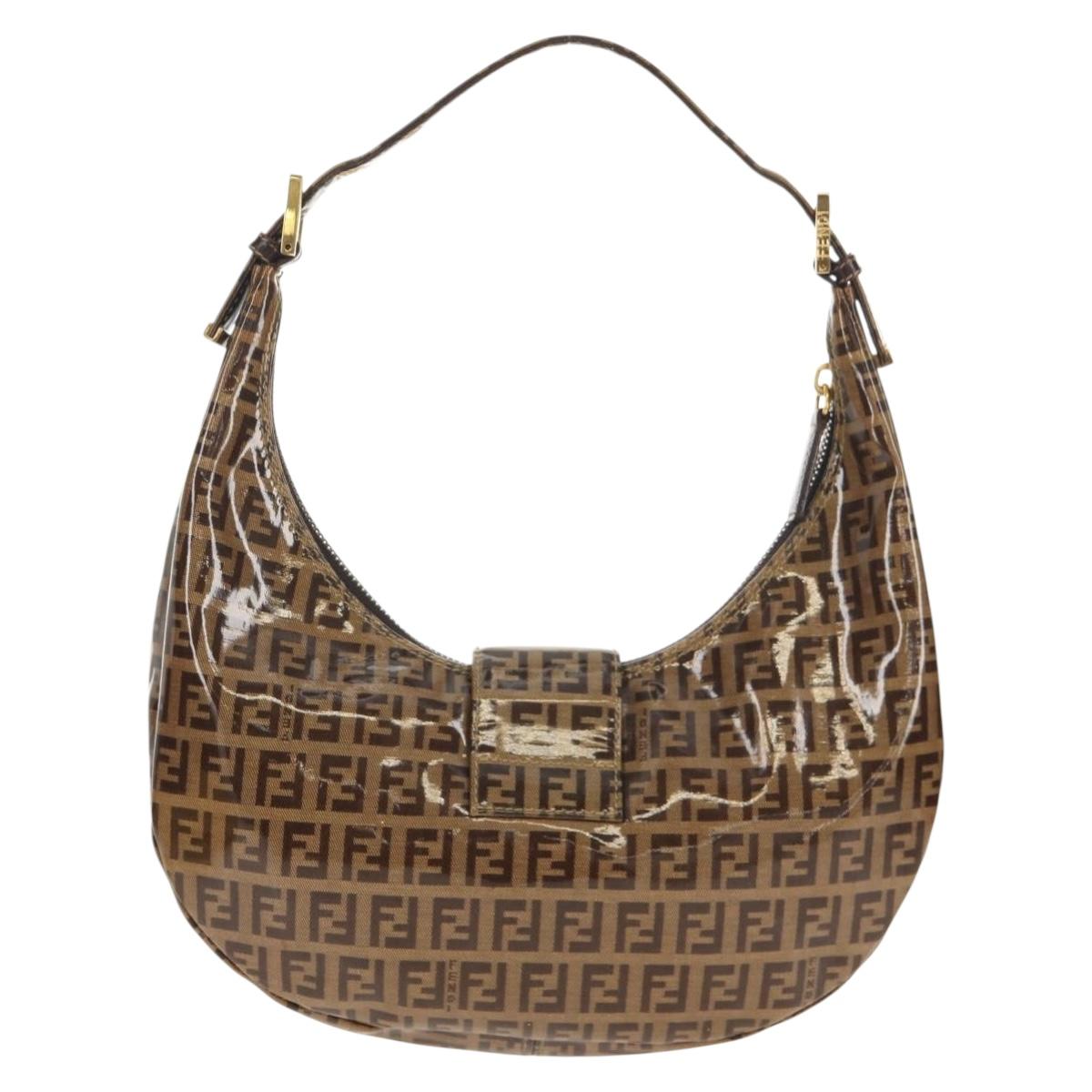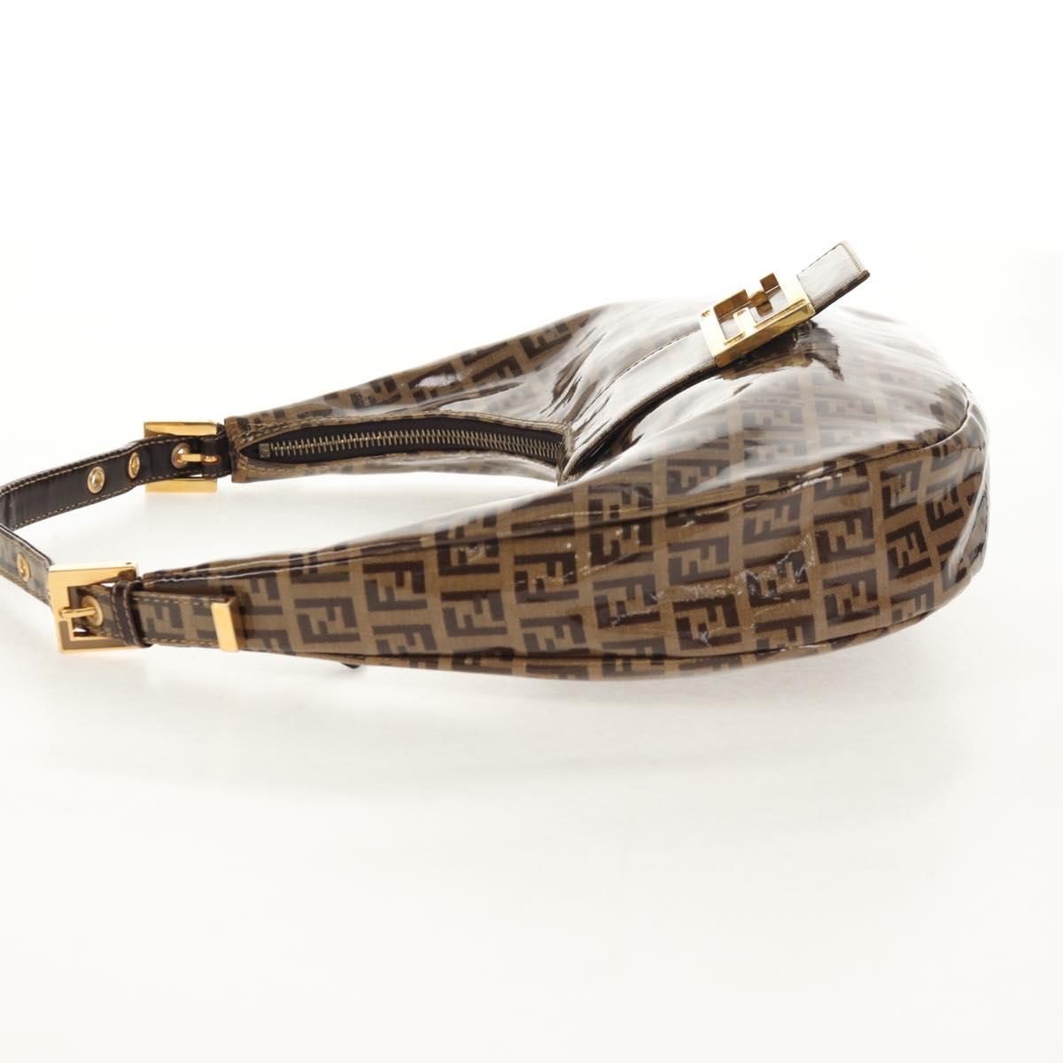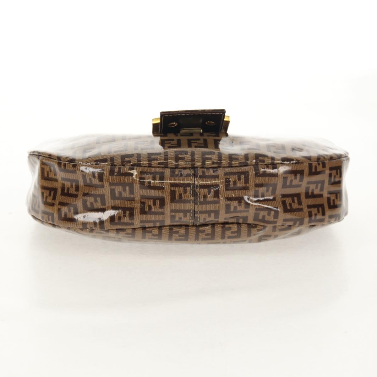 This is an authentic FENDI Vinyl Zucchino Baguette Double Flap in Tobacco. This baguette is crafted of brown zucchino vinyl canvas and gold hardware. The flap opens to a brown fabric interior.