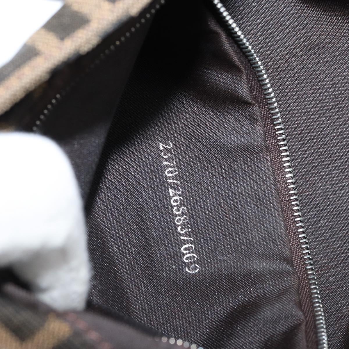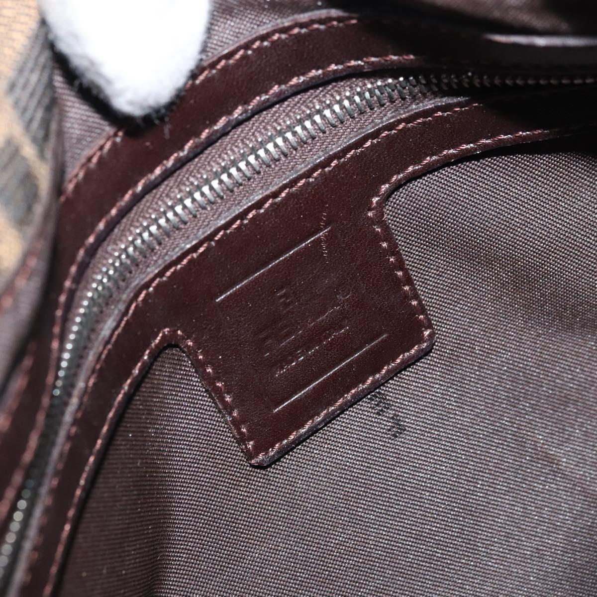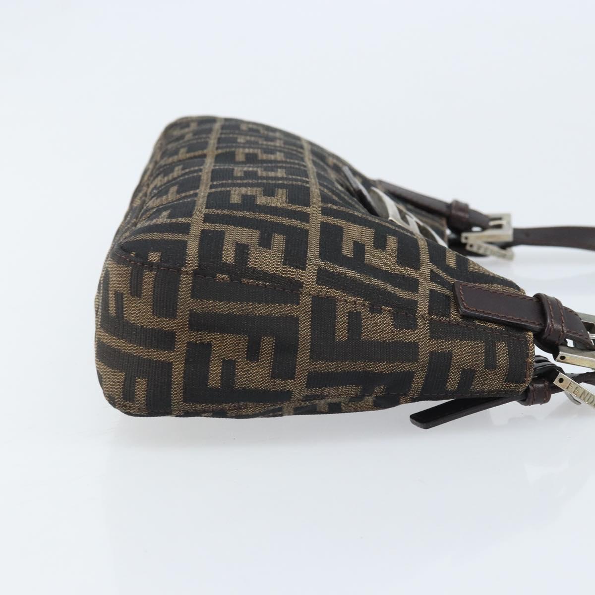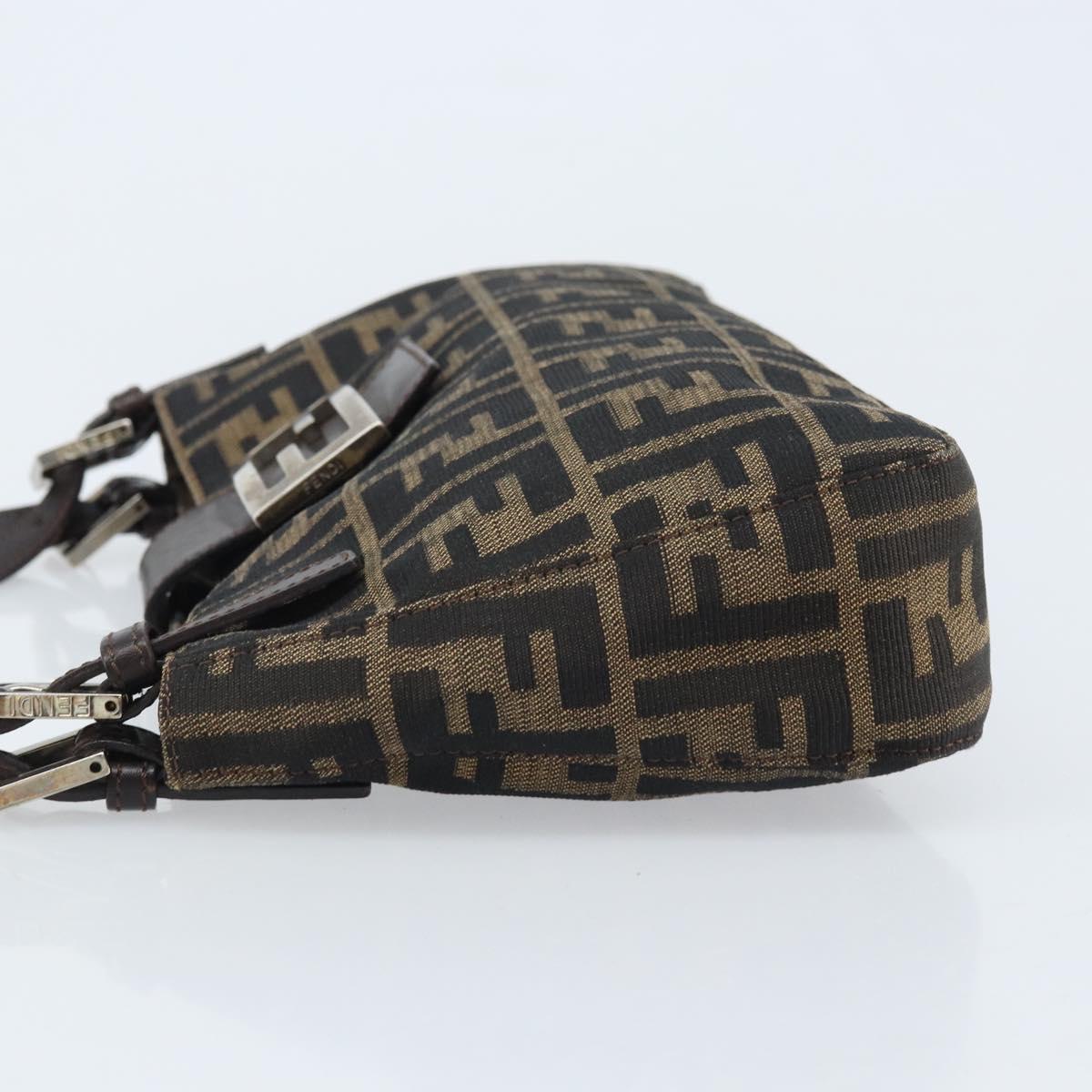 This is an authentic FENDI Zucca shoulder bag crafted of Zucca print canvas. It features a crossover snap closure, adjustable brown leather shoulder straps, and a prominent polished silver Fendi FF frontal detail closure. The interior opens to a lined interior with a pocket. 11.5"W x 6.5"H x 2"D, 7-9" handle drop