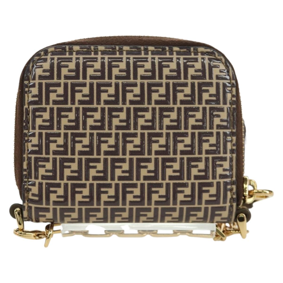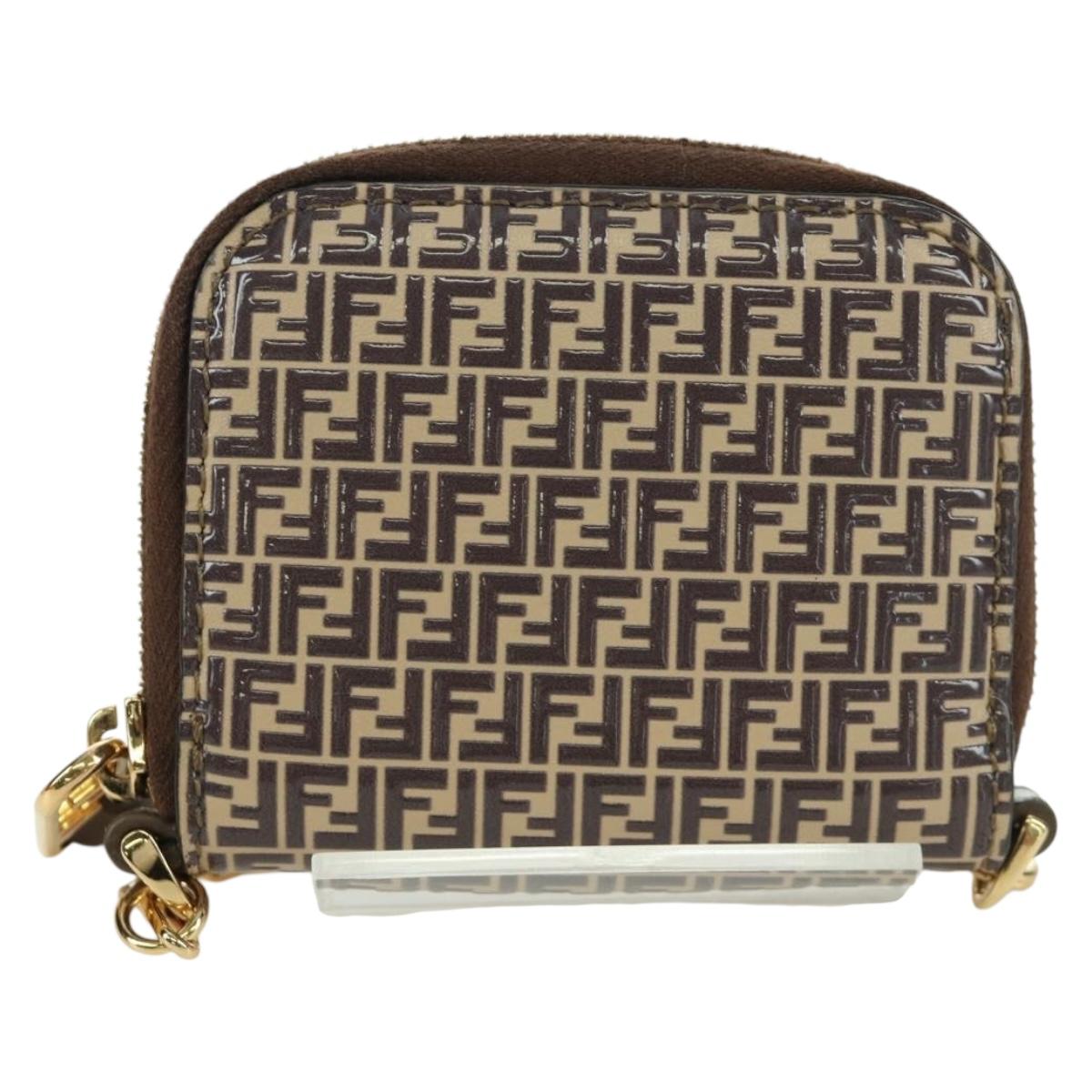 This is an authentic FENDI coin purse or airpod case crafted of brown zucchino embossed leather with gold hardware and a zip around closure. It features a keychain that you can hand on your purse or keys.