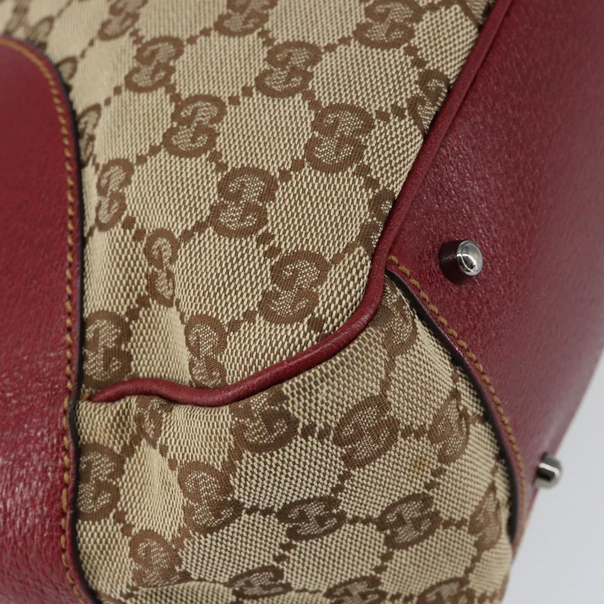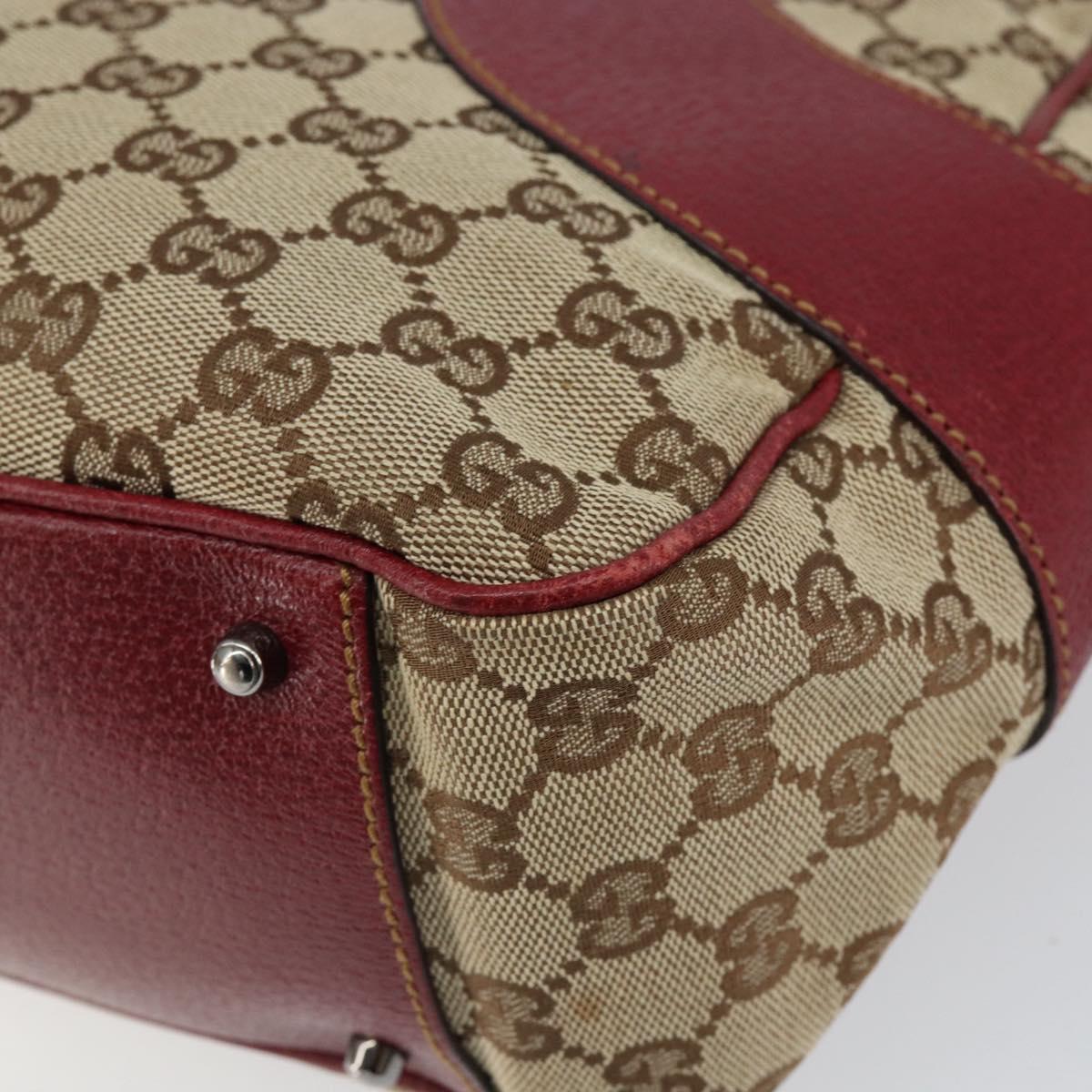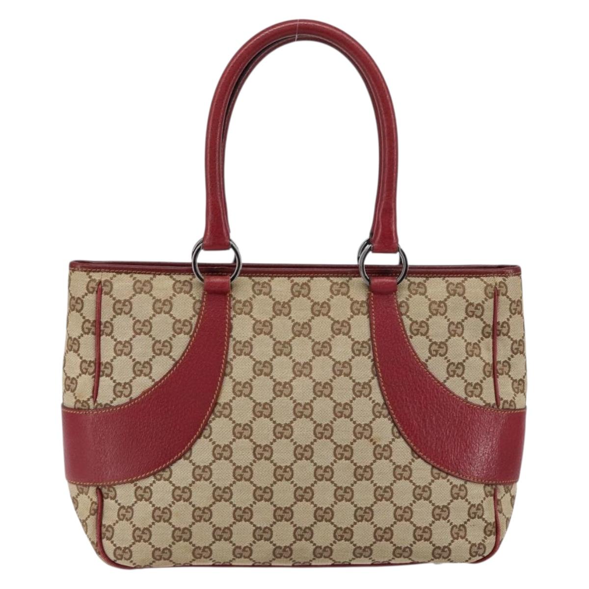 This is an authentic GUCCI Monogram Tote icrafted of classic Gucci GG monogram canvas, bordeaux leather trim and top handles with gold hardware. The top unzips to a fabric interior with a zipper pocket.