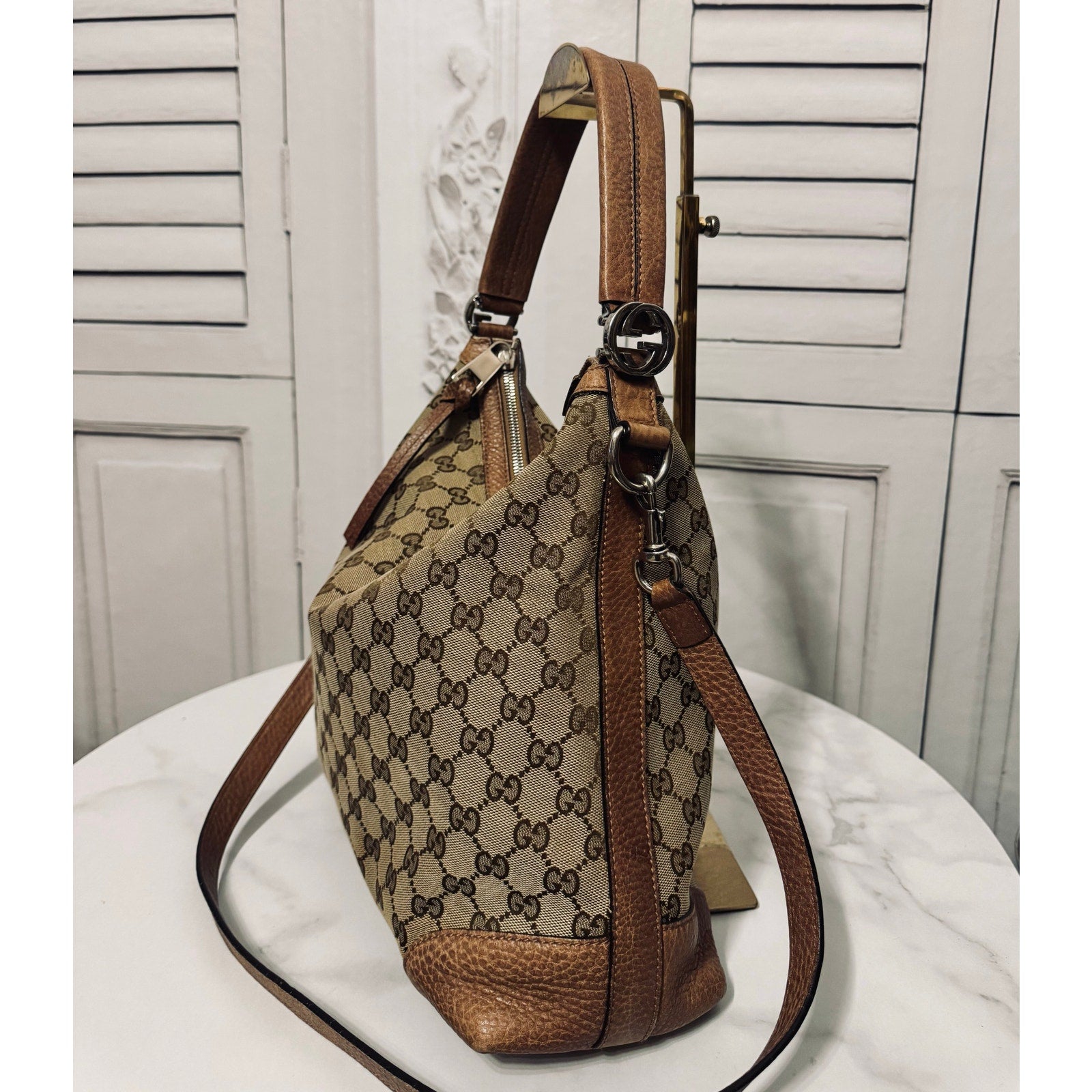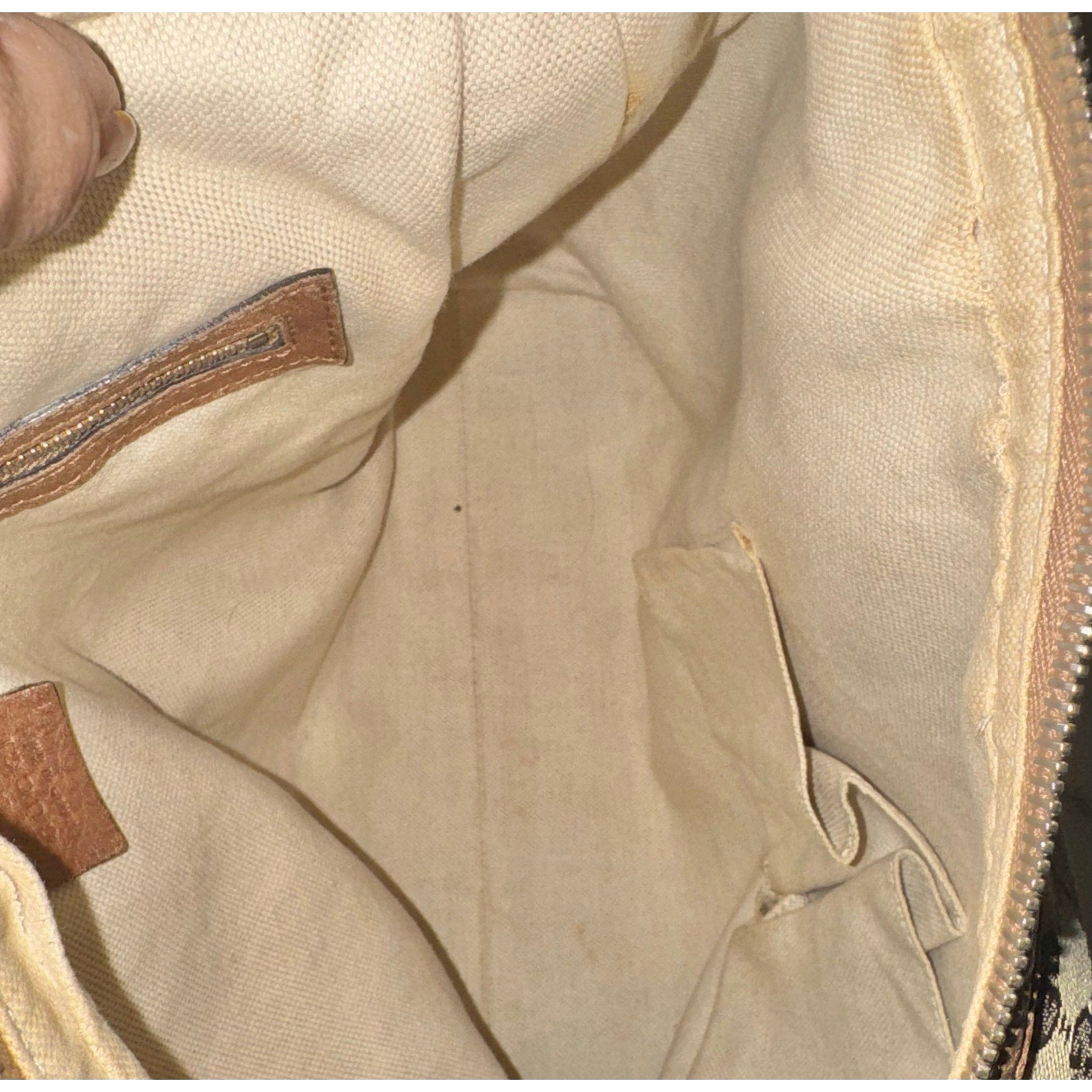 This is an authentic GUCCI Monogram Medium Miss GG Hobo crafted of traditional Gucci GG monogram canvas and features a leather base, trim and shoulder strap with bold silver GG logo embellishments at both ends. The top unzips to a beige fabric interior with zipper and patch pockets.