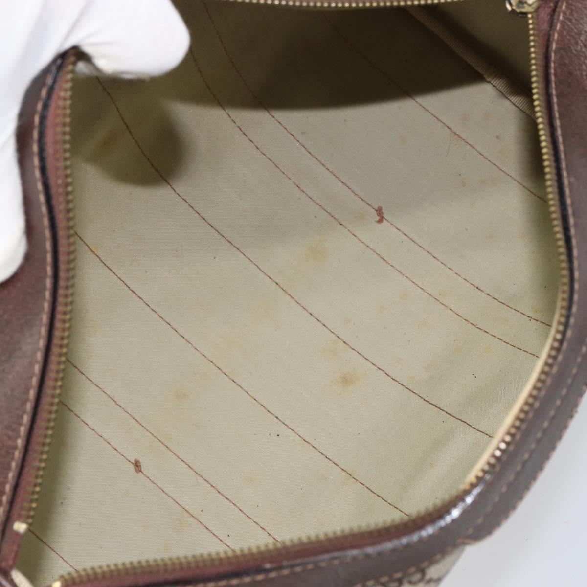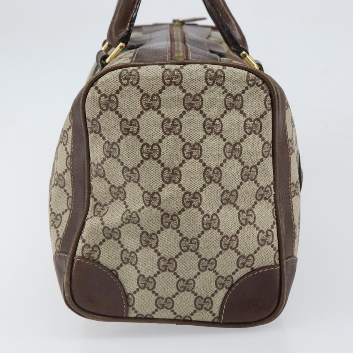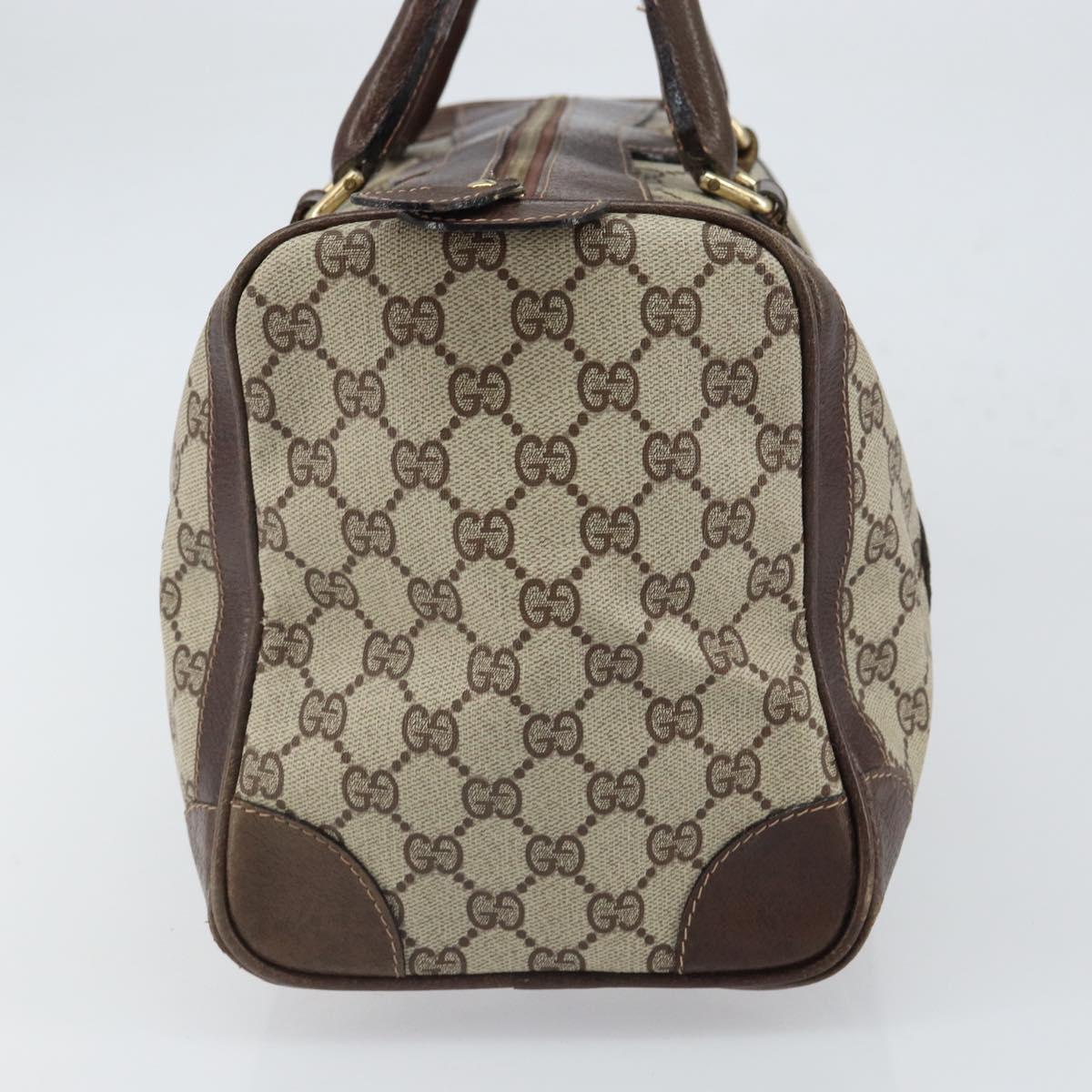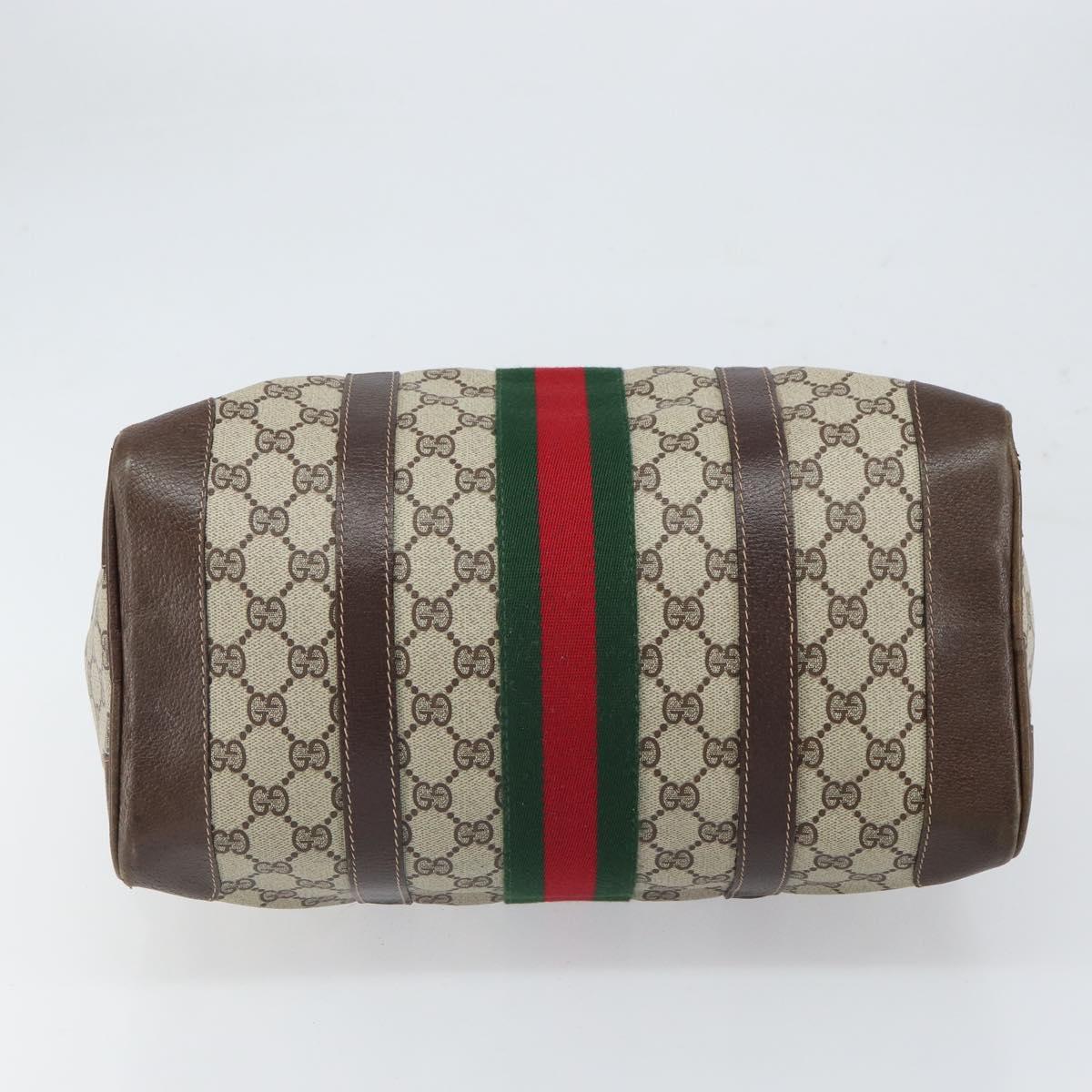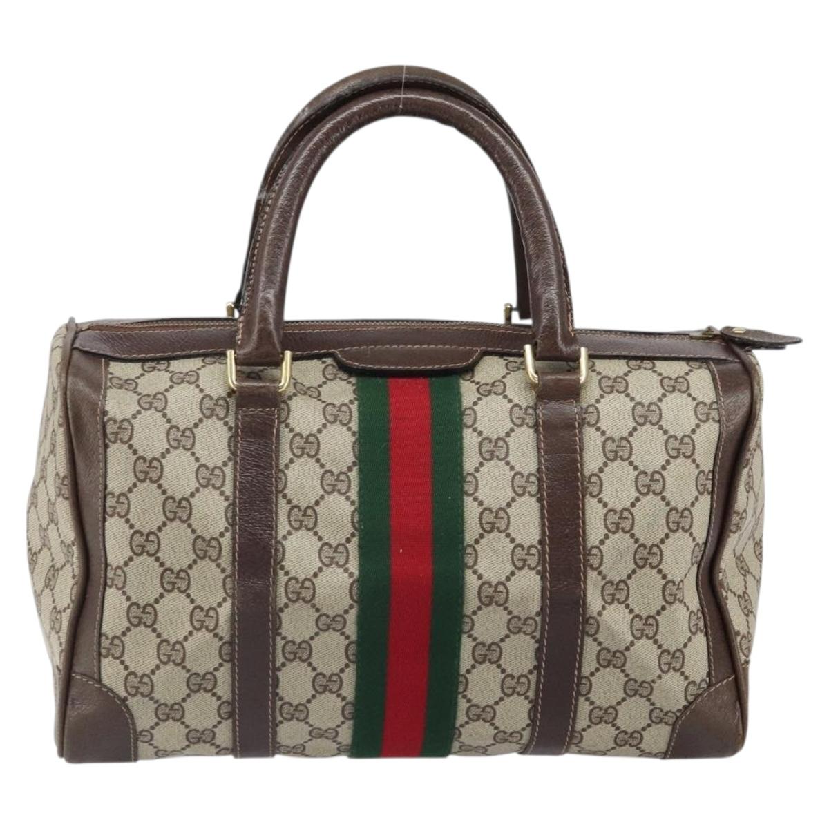 This is an authentic GUCCI Boston Bag crafted of classic GG supreme coated canvas in classic beige with brown leather trim. The bag features leather top handles.