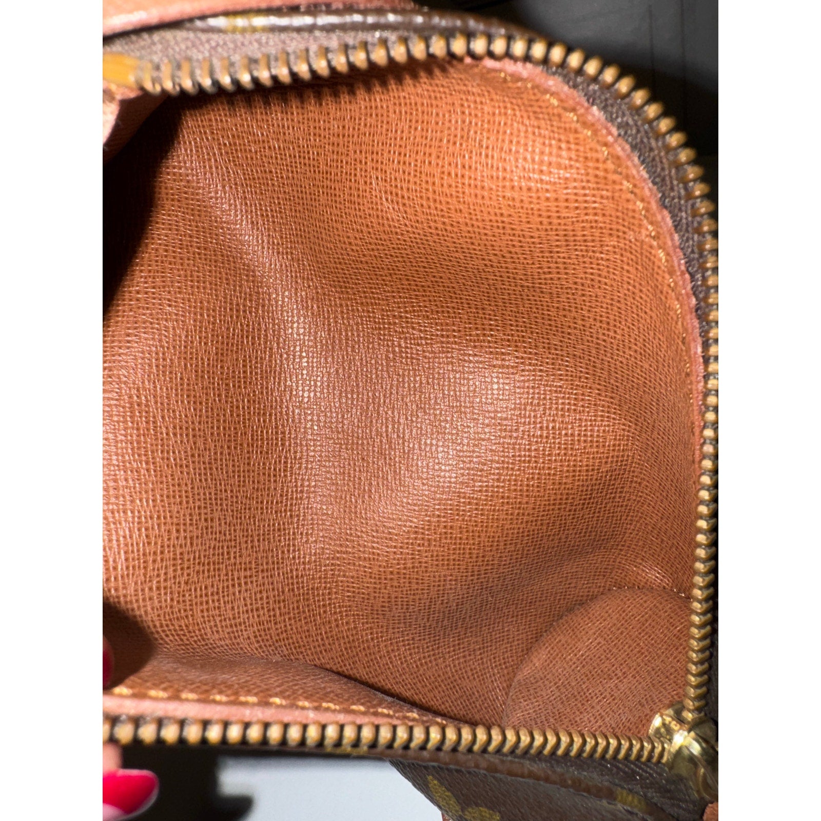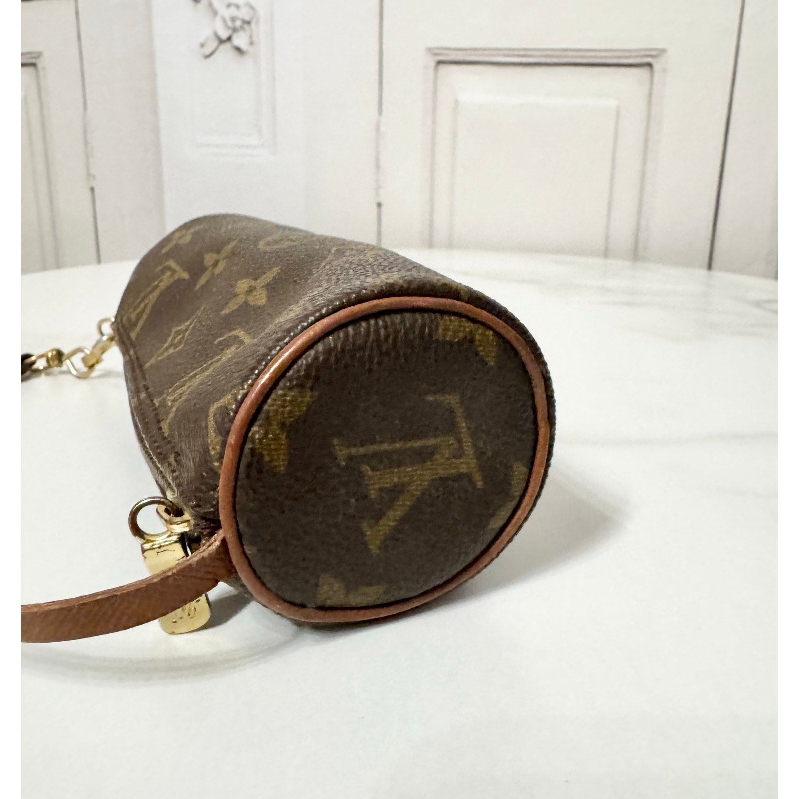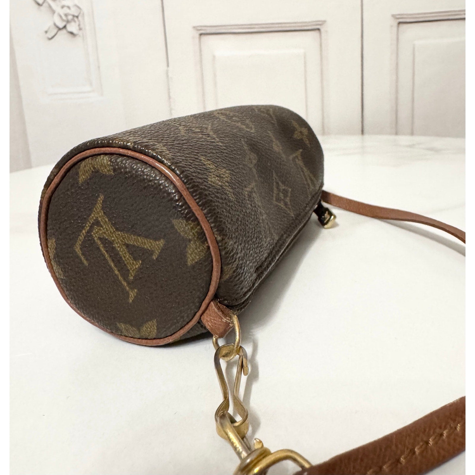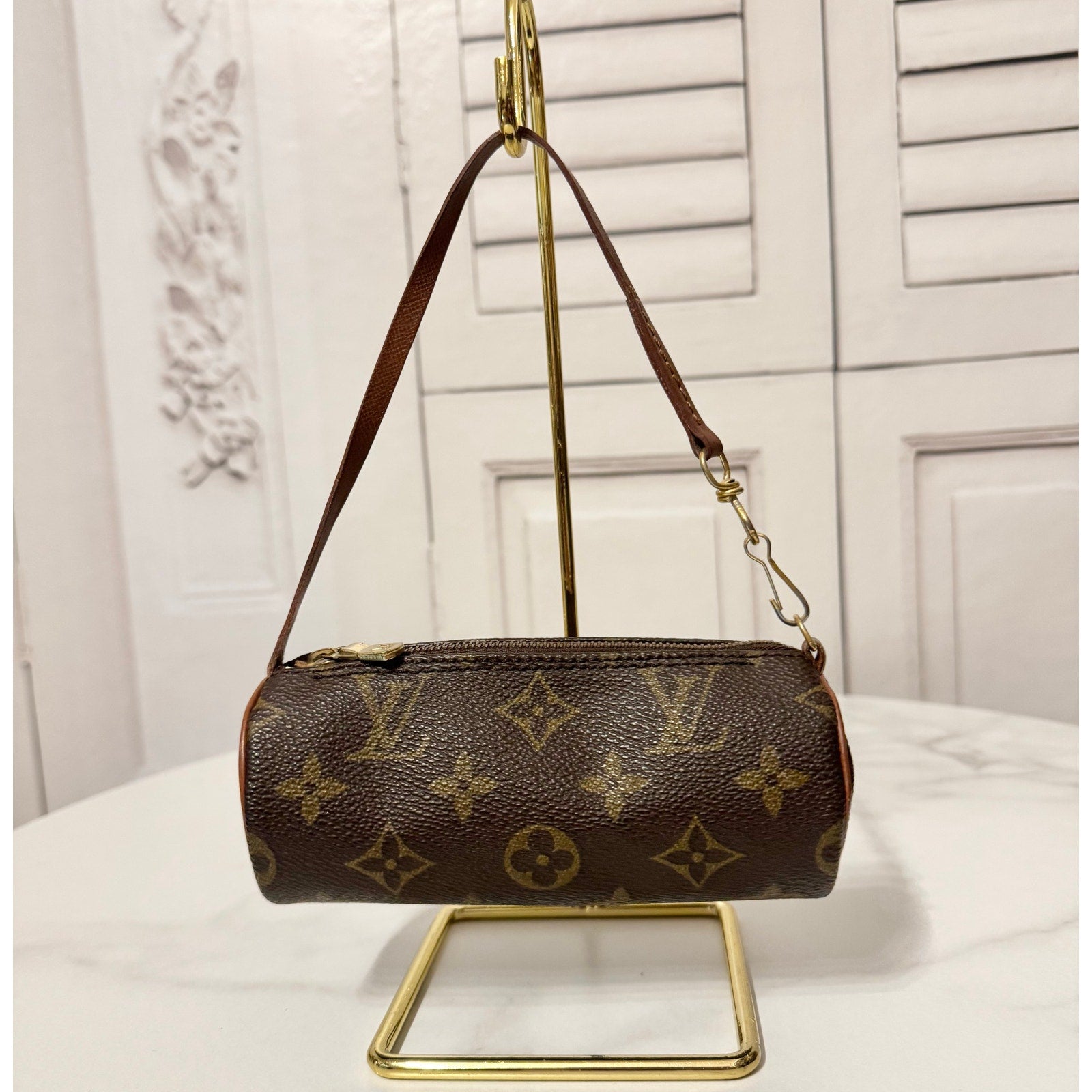 This is an authentic vintage LOUIS VUITTON Monogram Mini Papillon. The charming pochette is the smaller version of the popular Papillon handbag. It is crafted of classic Louis Vuitton monogram on toile canvas. The pochette has leather piping and a matching strap with a brass clasp end, which can be secured to your handbag. The top zips open to a terra cotta cross-grain leather interior.