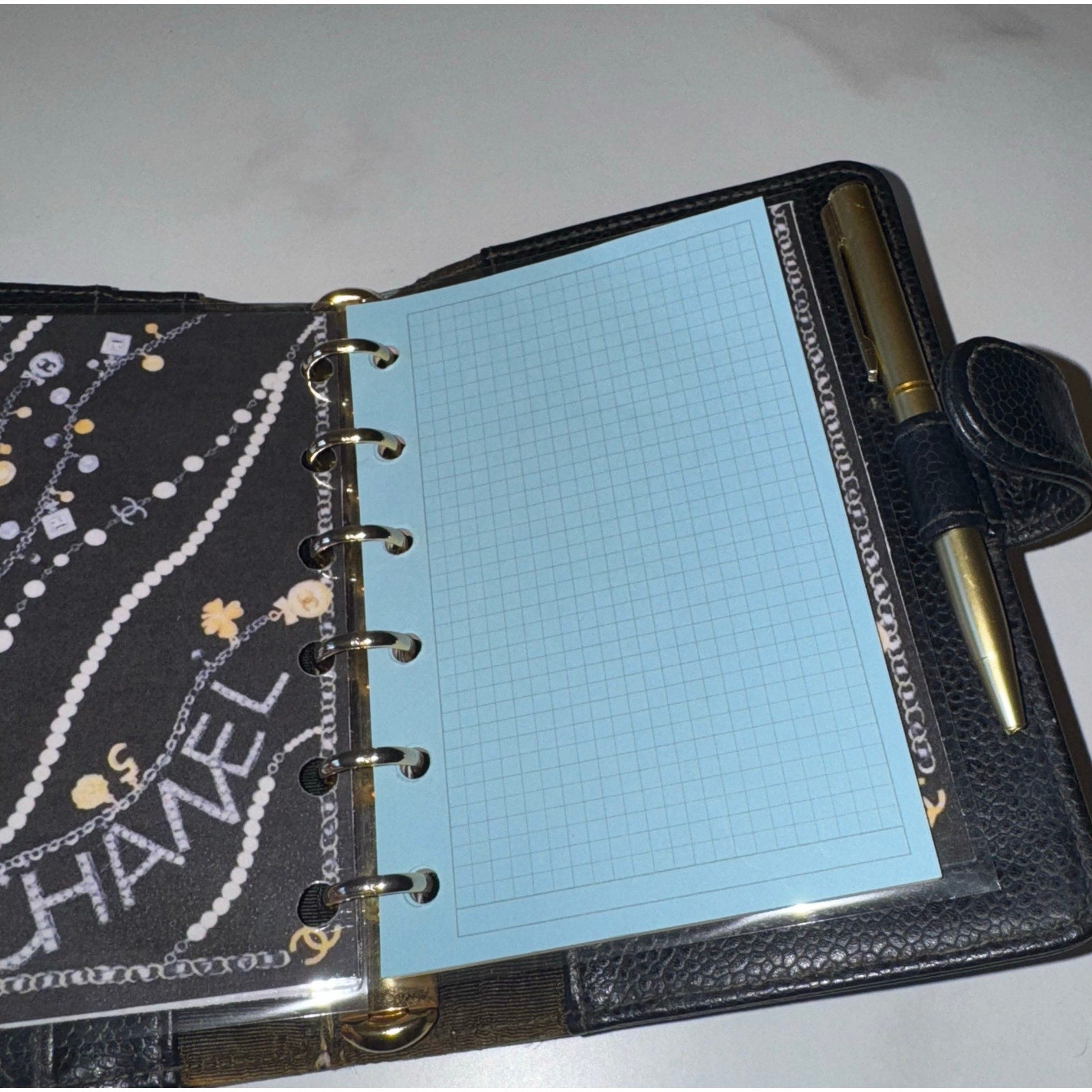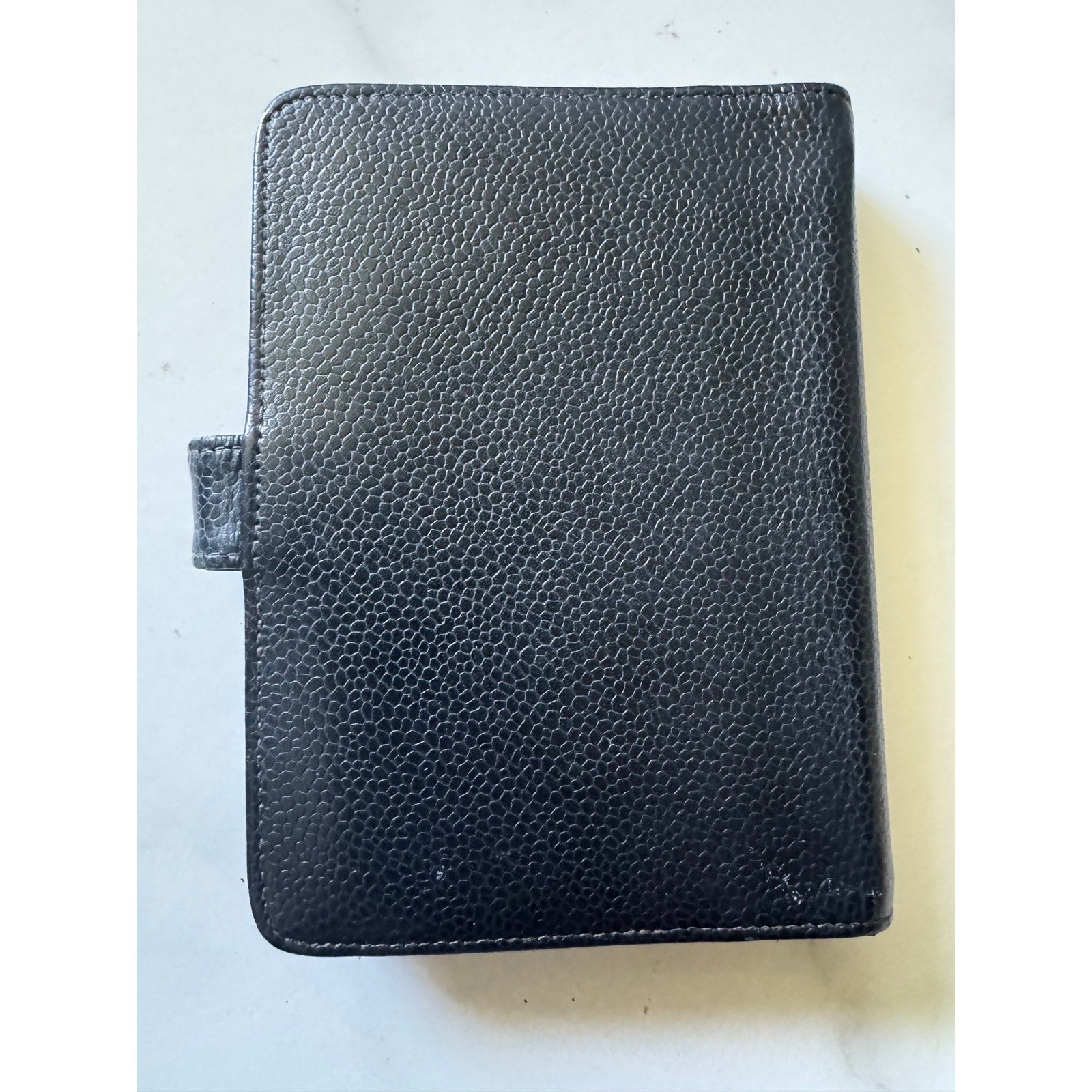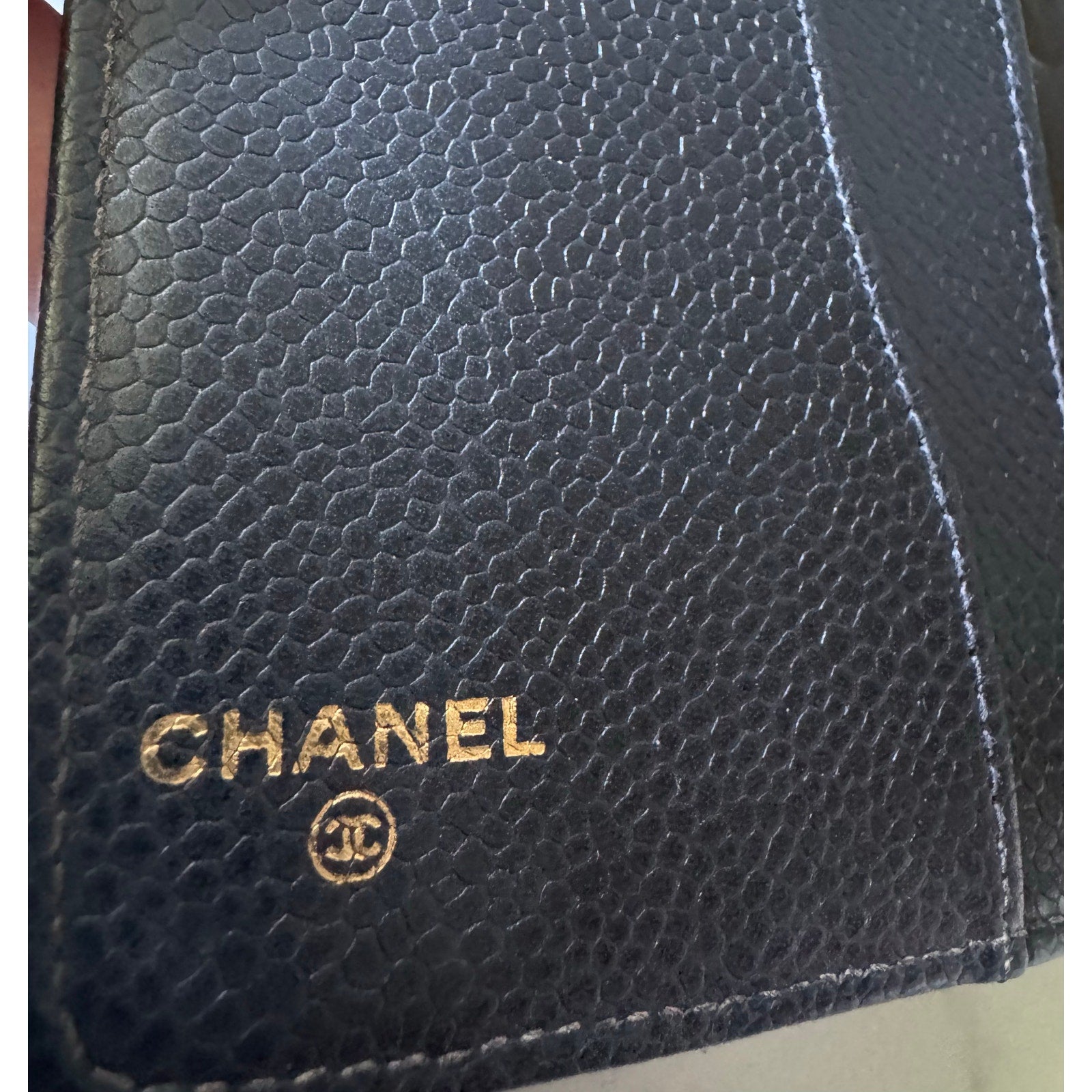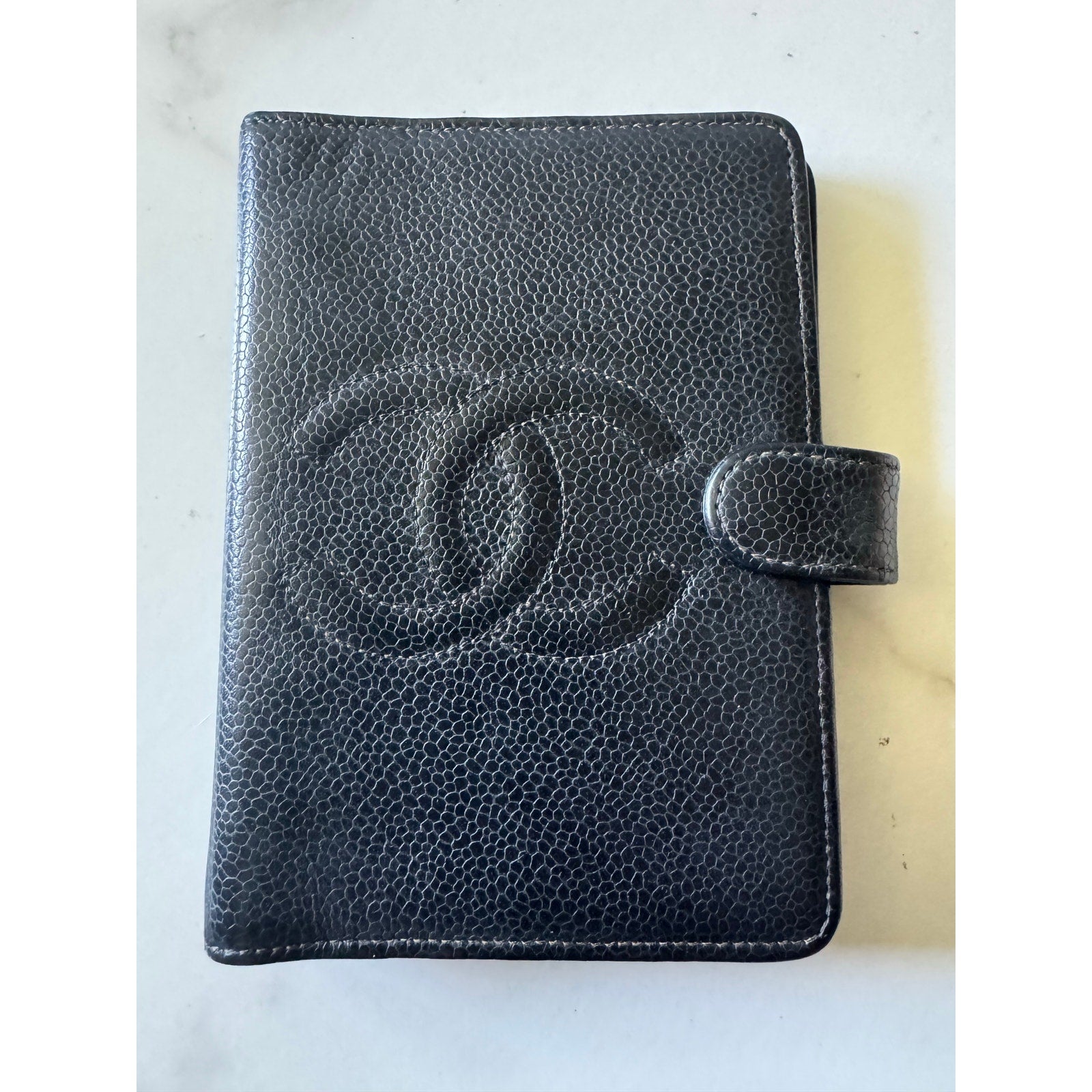 This is an authentic Chanel Small Ring Agenda Cover featuring an exterior of durable black caviar leather held by a snap closure. It opens to an leather interior of with three large pockets, and a brass 6-ring binder. Includes 2 full color custom laminated inserts and paper.