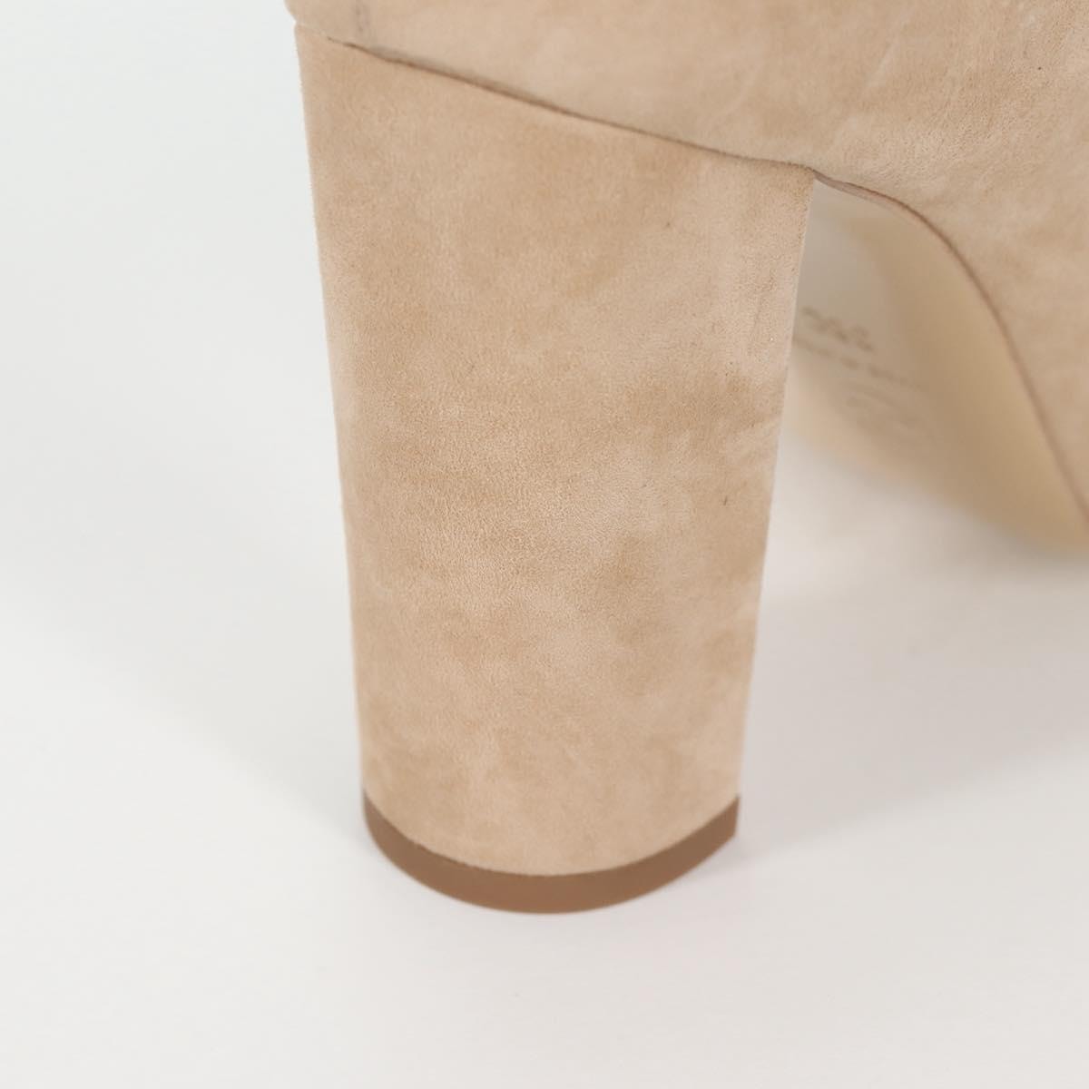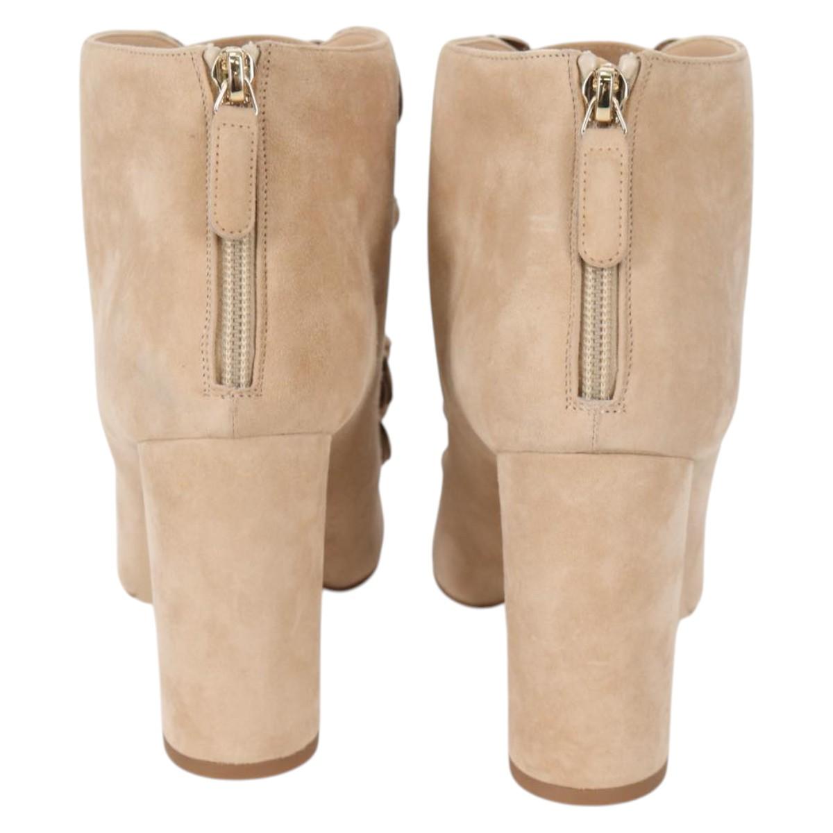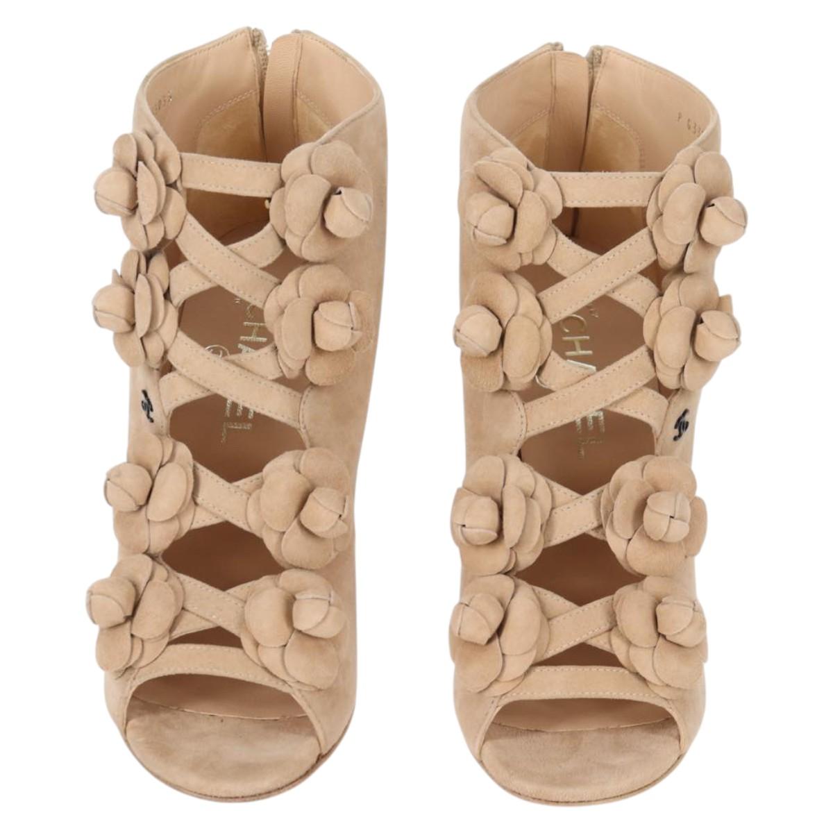 This is an authentic pair of CHANEL Suede Camellia Short Booties in size 38.5 in Beige. These stunning boots are crafted of suede leather and 3.25 inch heel in Size 38.