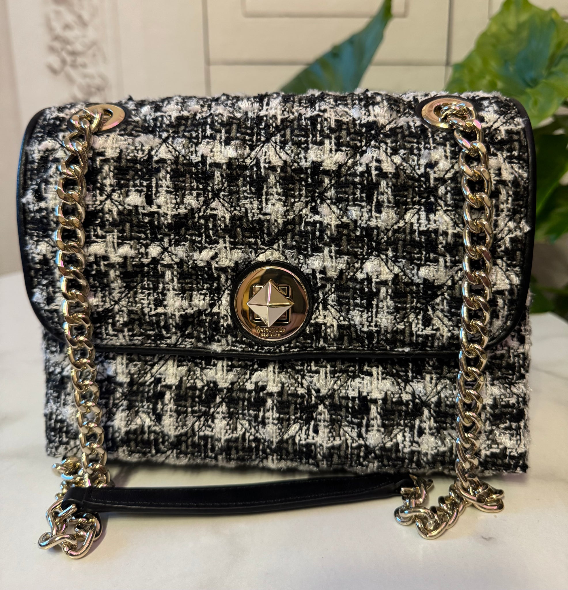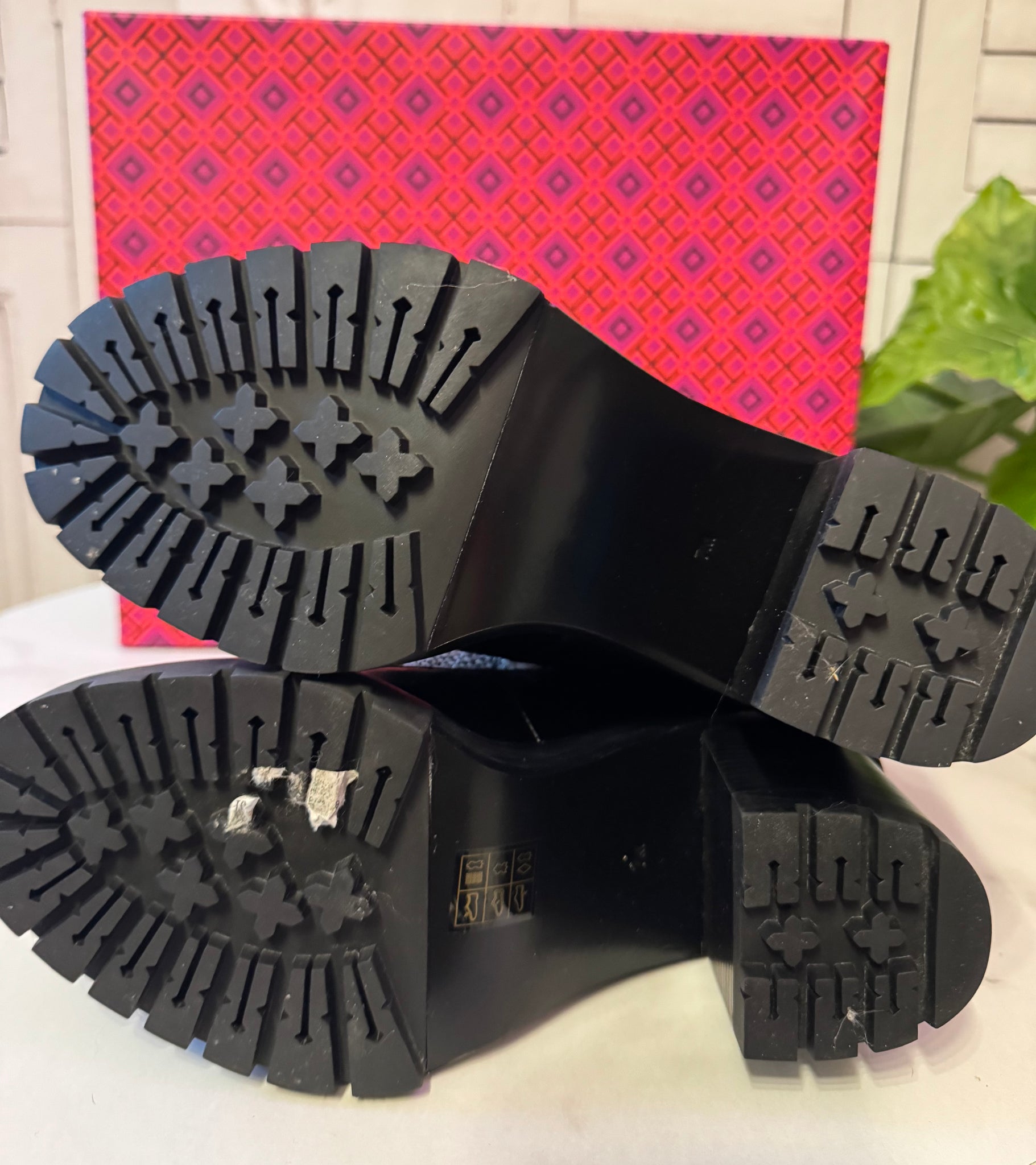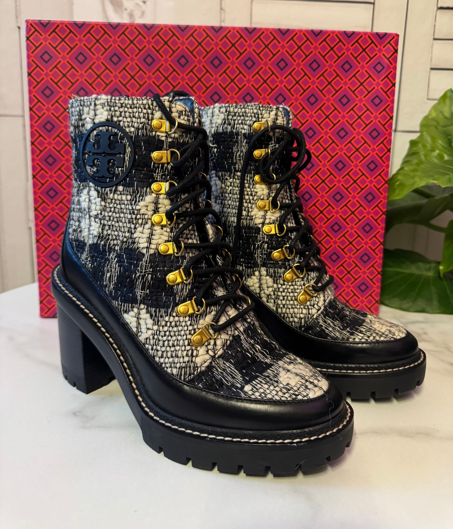 This bundle includes Size 7 Tory Burch Tweed Lug Sole Boots and ate Spade Tweed flap bag (can be worn over the shoulder or crossbody.