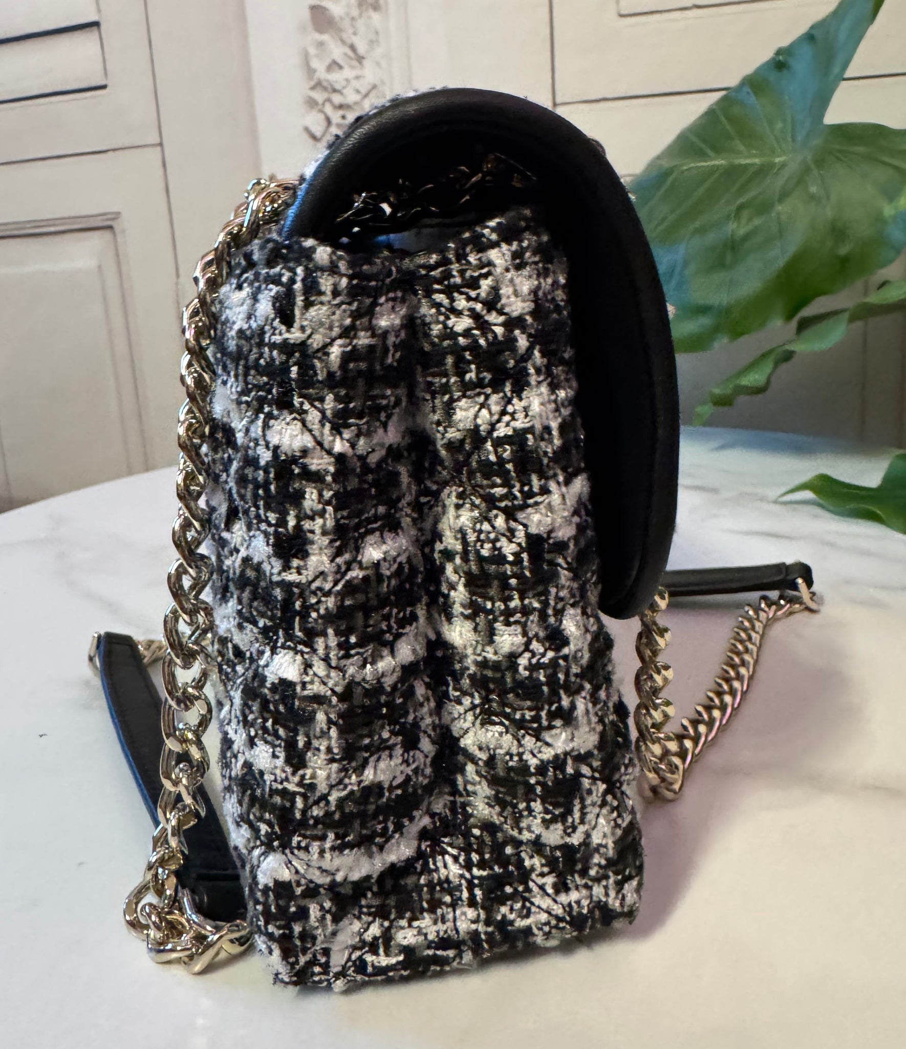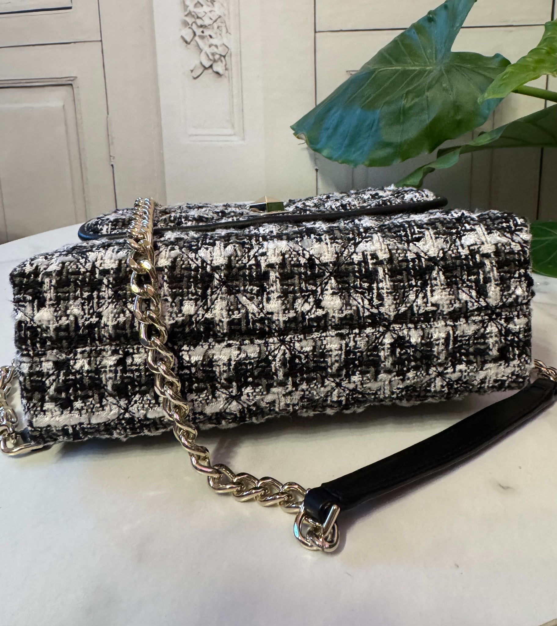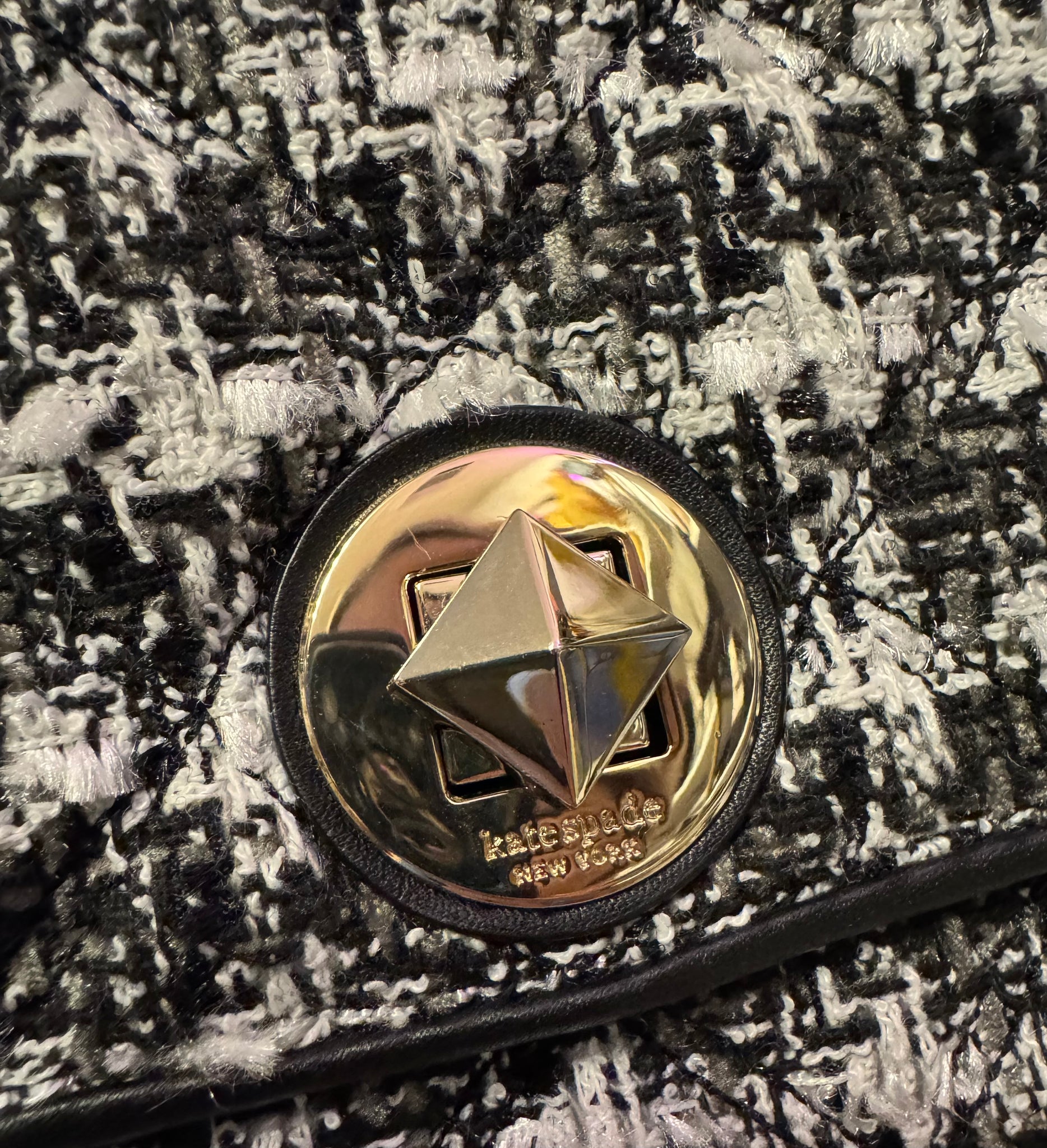 This bundle includes Size 7 Tory Burch Tweed Lug Sole Boots and ate Spade Tweed flap bag (can be worn over the shoulder or crossbody.