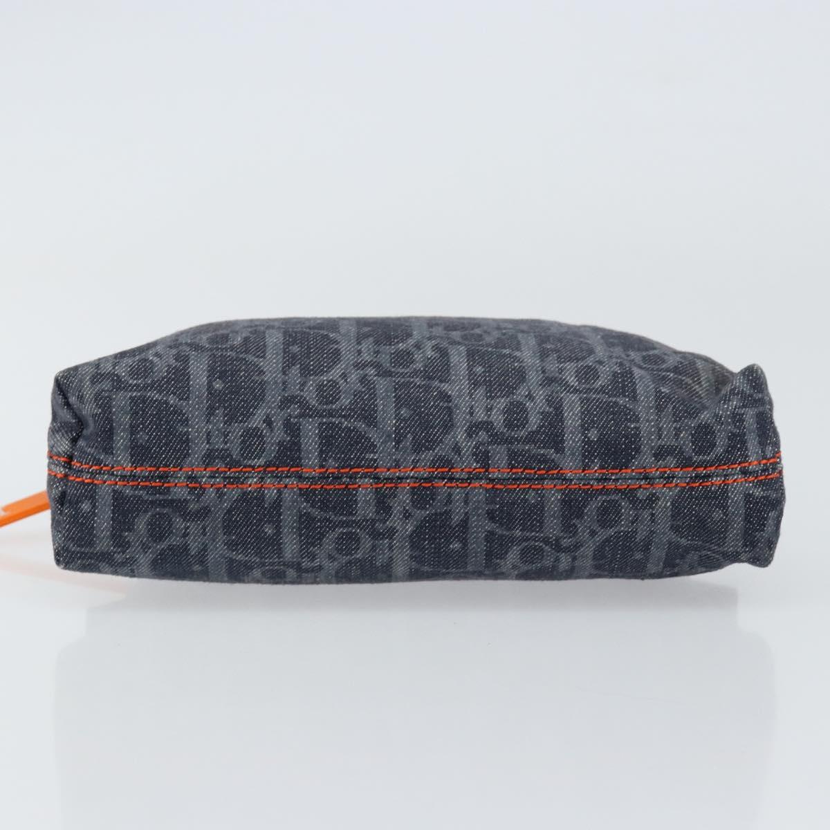 This is an authentic CHRISTIAN DIOR cosmetic bag crafted of a blue denim monogram canvas with orange contrast stitching.