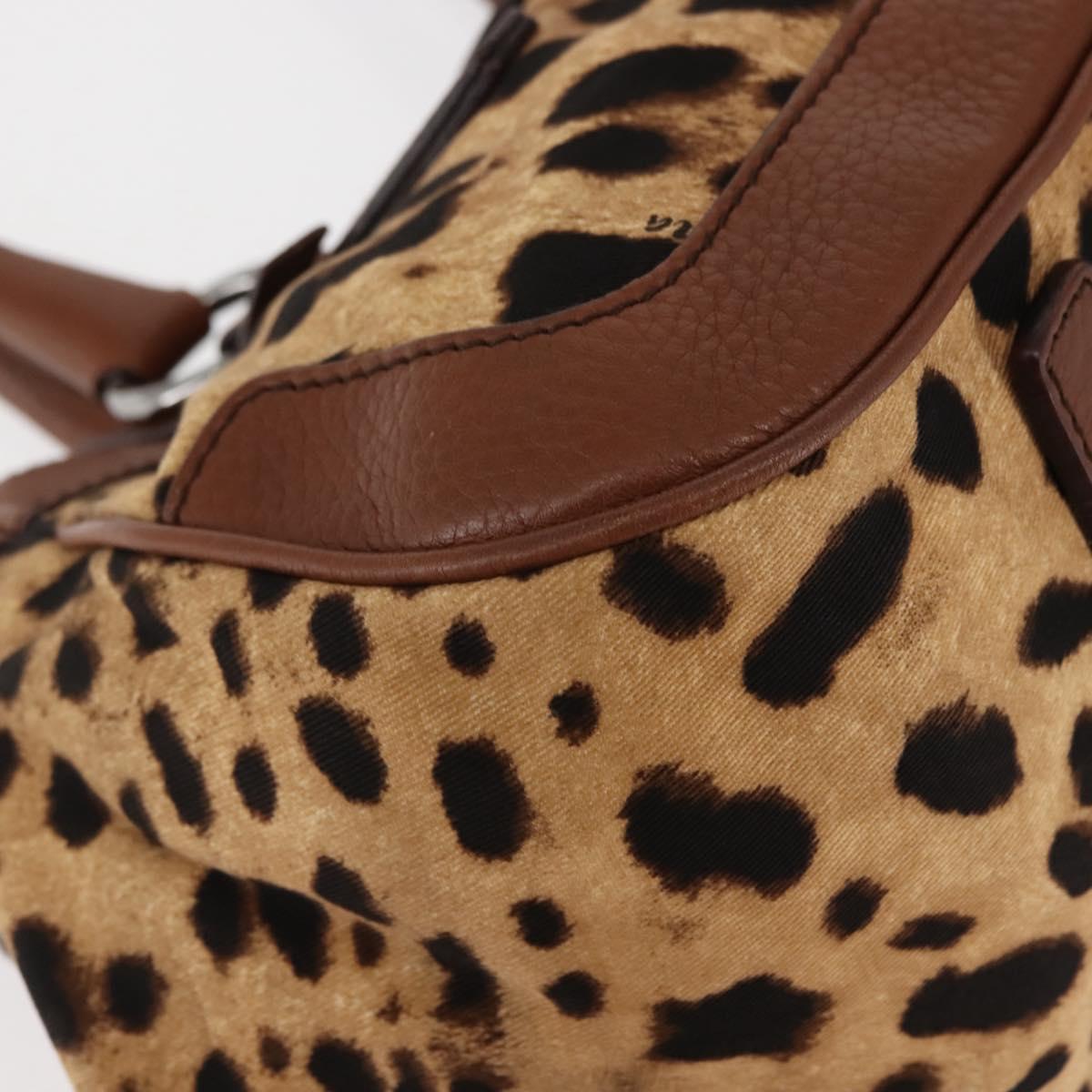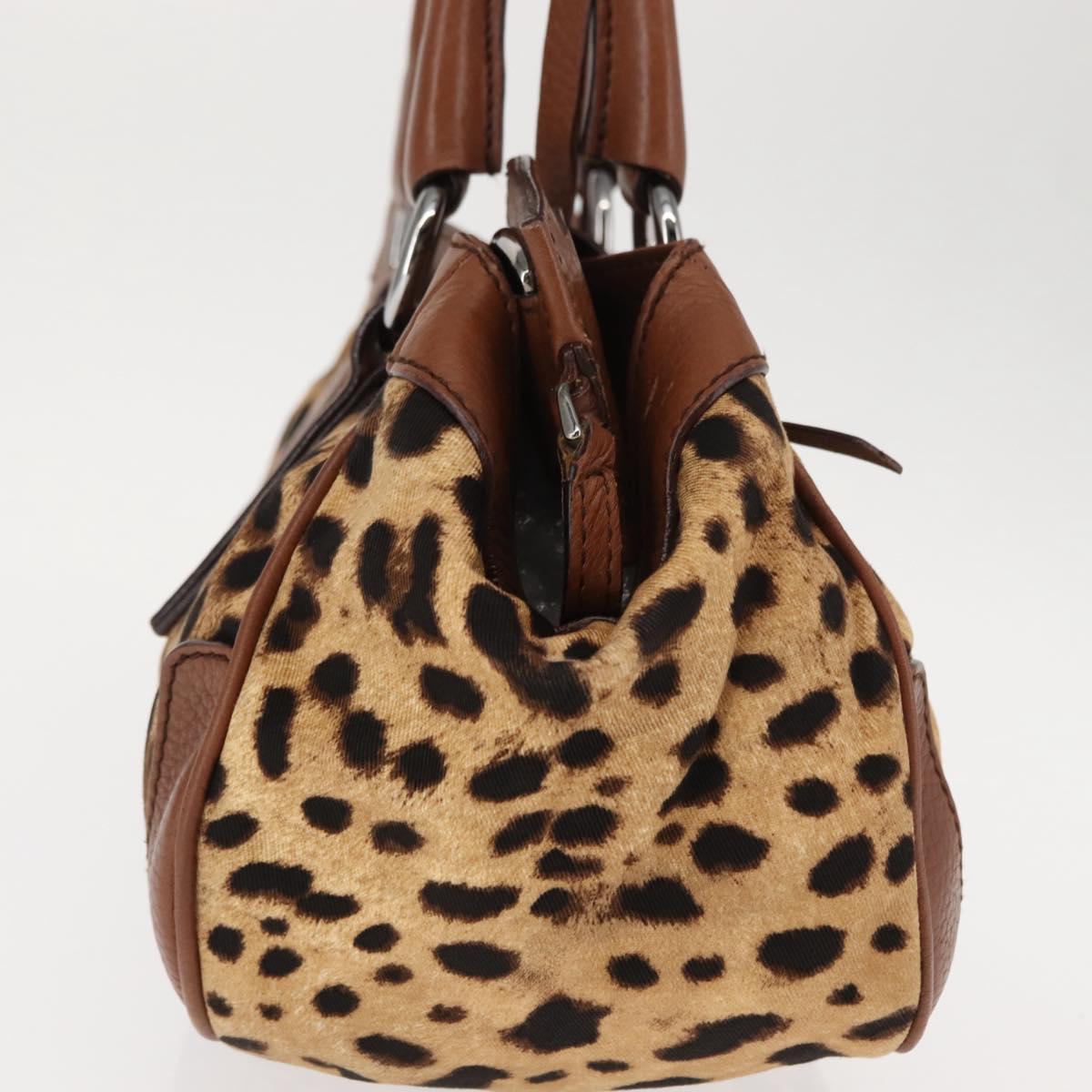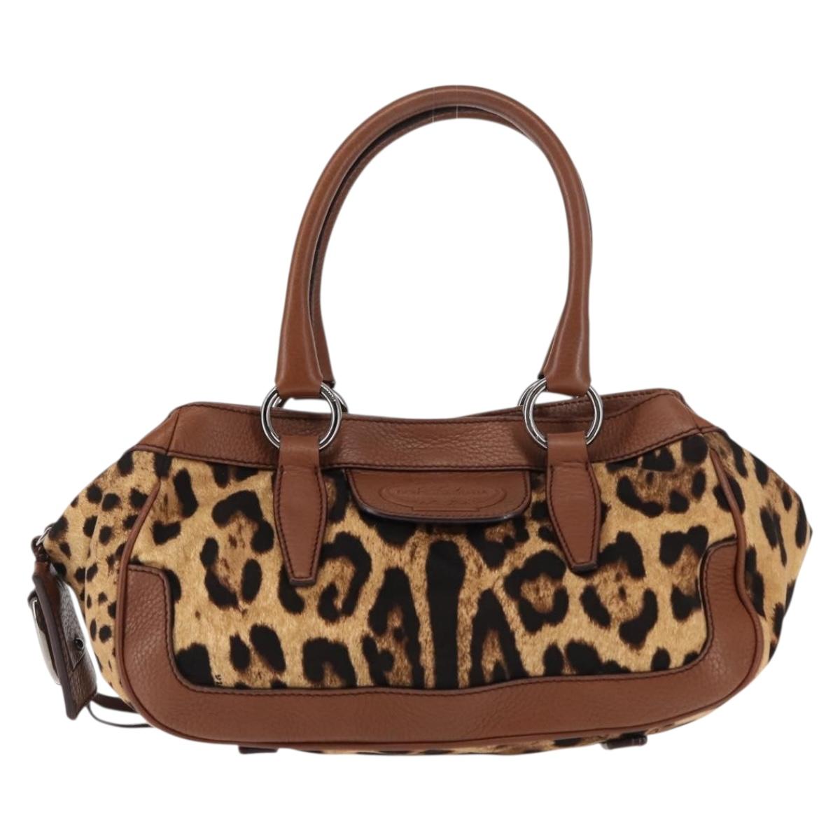 This is an authentic DOLCE & GABBANA top handle bag crafted of canvas in a leopard print. The bag features brown leather top handles and silver hardware. The top unsnaps to a fabric lined interior.