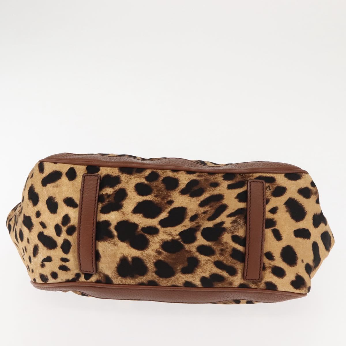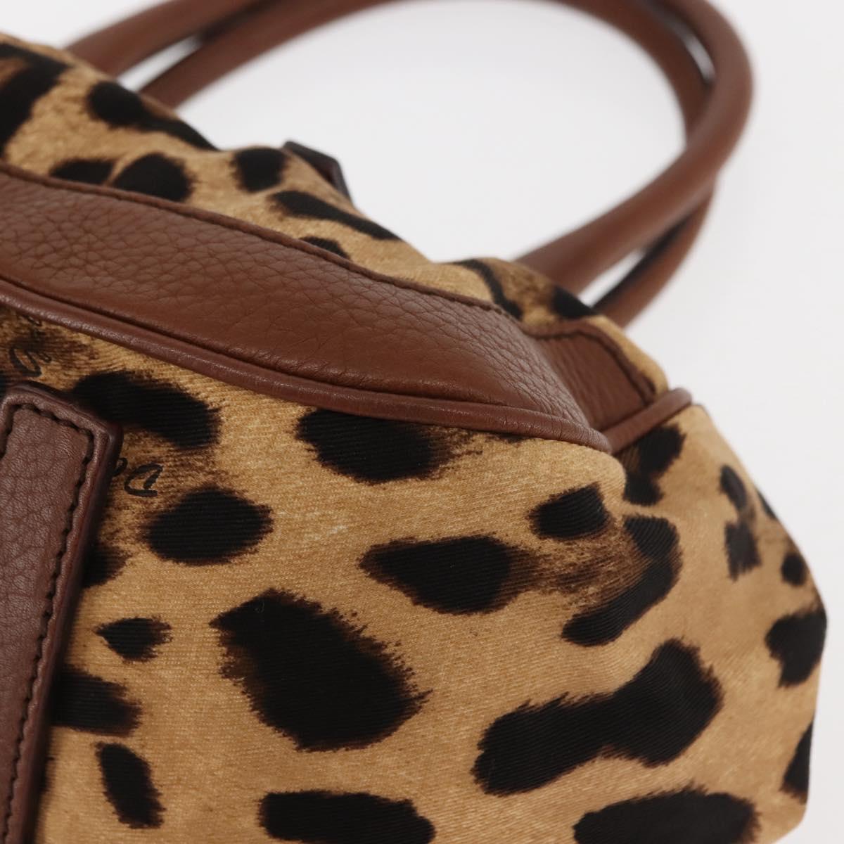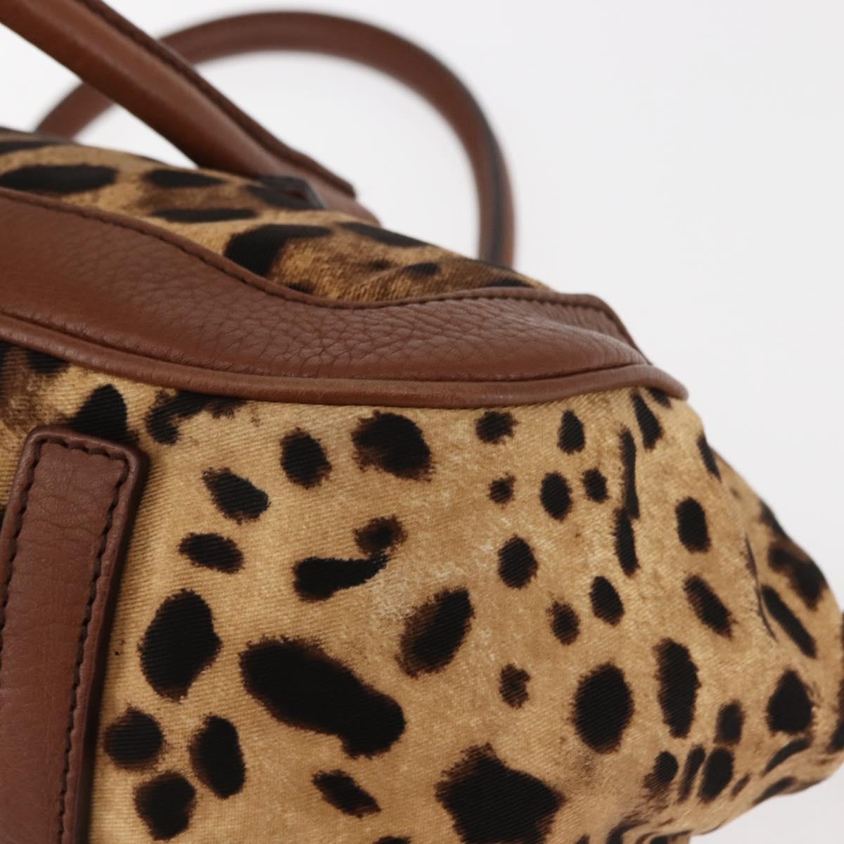 This is an authentic DOLCE & GABBANA top handle bag crafted of canvas in a leopard print. The bag features brown leather top handles and silver hardware. The top unsnaps to a fabric lined interior.