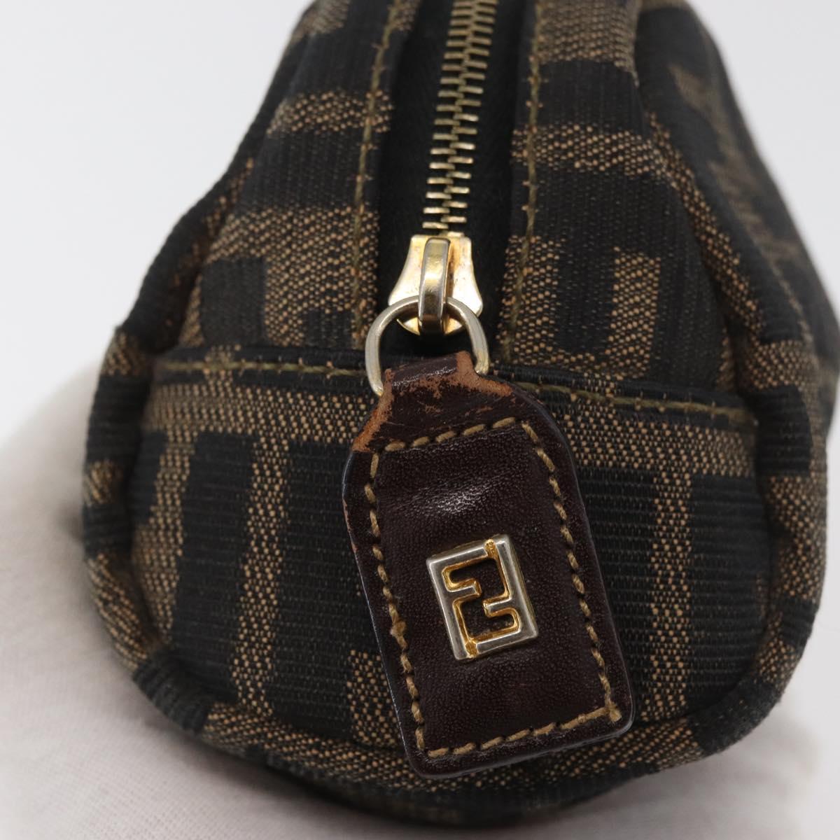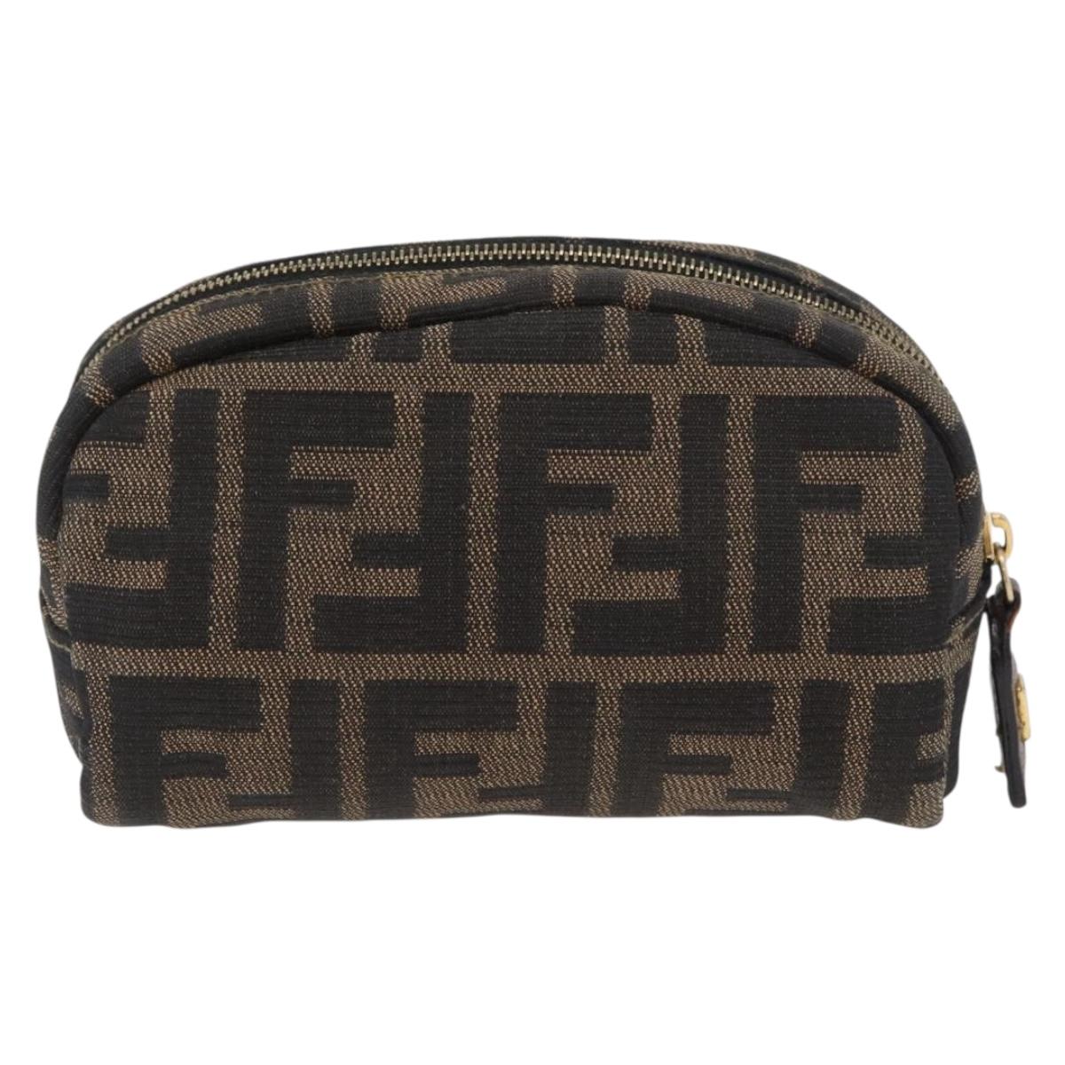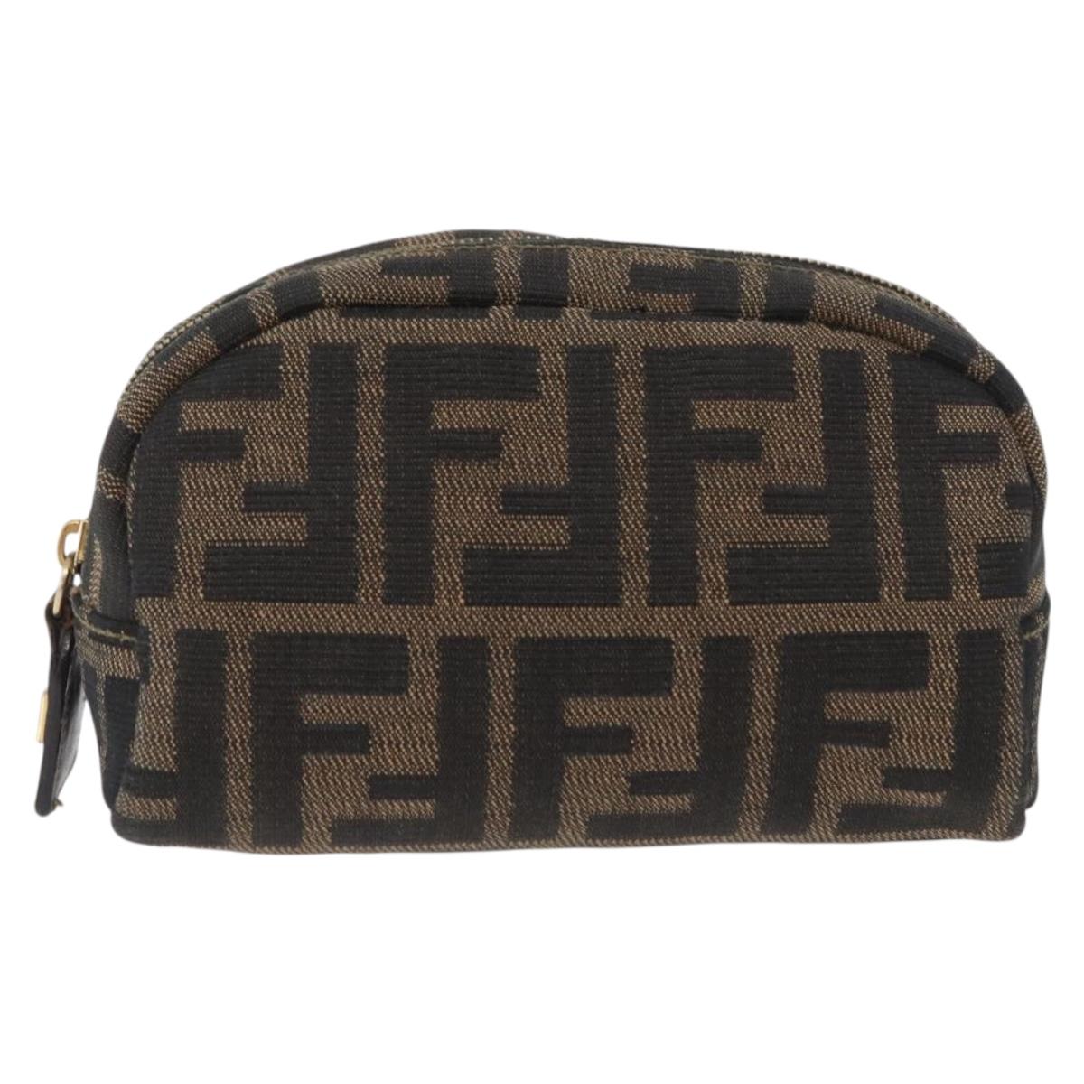This is an authentic FENDI Zucca canvas cosmetic bag with a zipper closure.