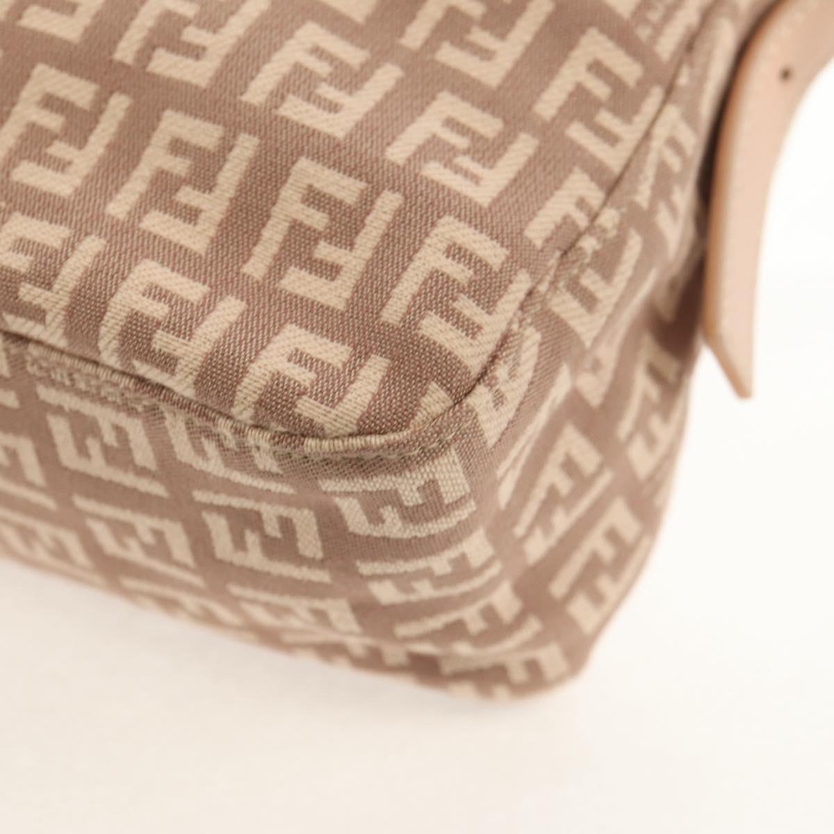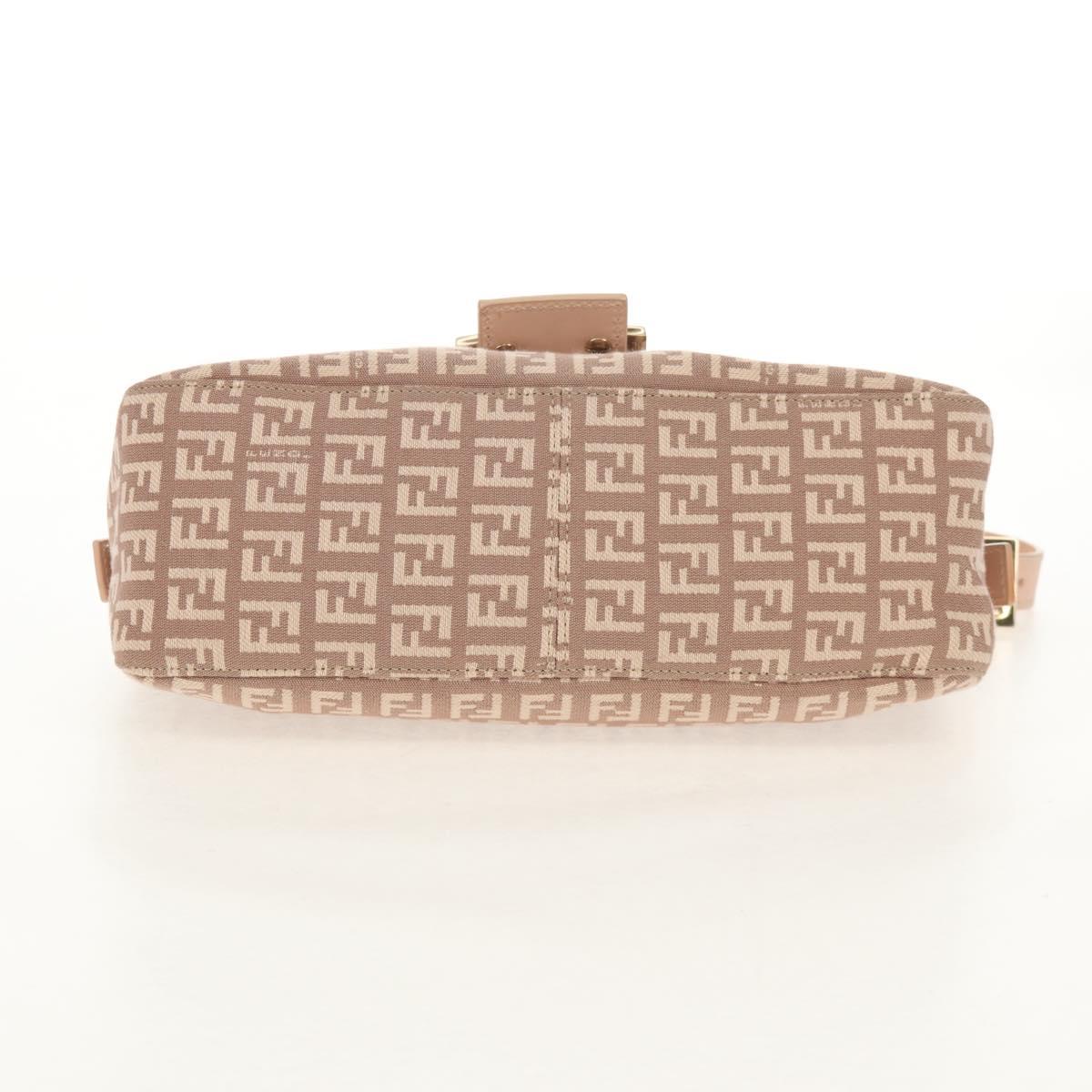 This is an authentic FENDI Zucchino Baguette crafted of beige zucchino canvas. It features an overhanging flap, an adjustable beige leather shoulder strap, and a prominent Fendi FF frontal detail closure. The interior opens to a Zucca Canvas interior with a zipper pocket.