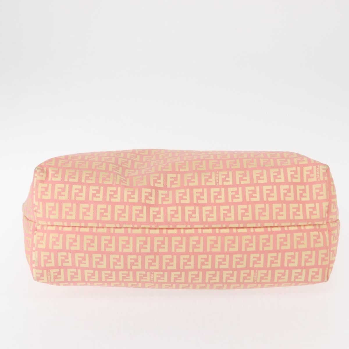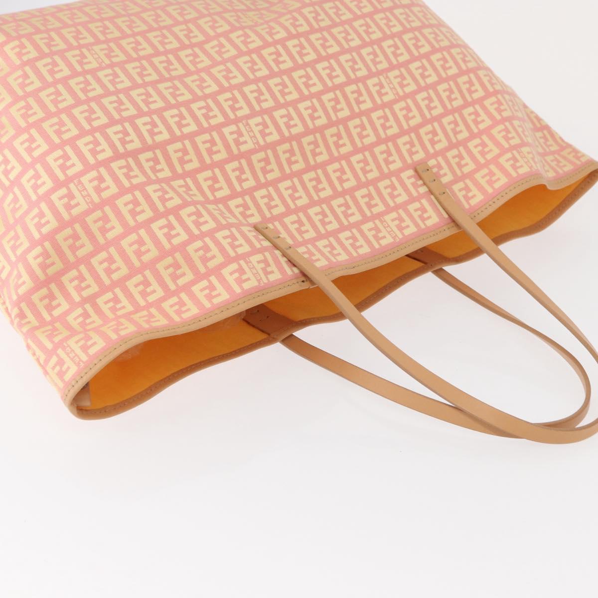 This is an authentic FENDI Zucchino tote is crafted of Fendi Zucchino monogram canvas in pink. The bag features leather shoulder straps and opens to a yellow interior with a removeable pouch.