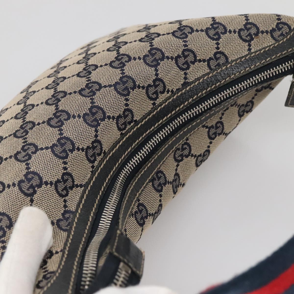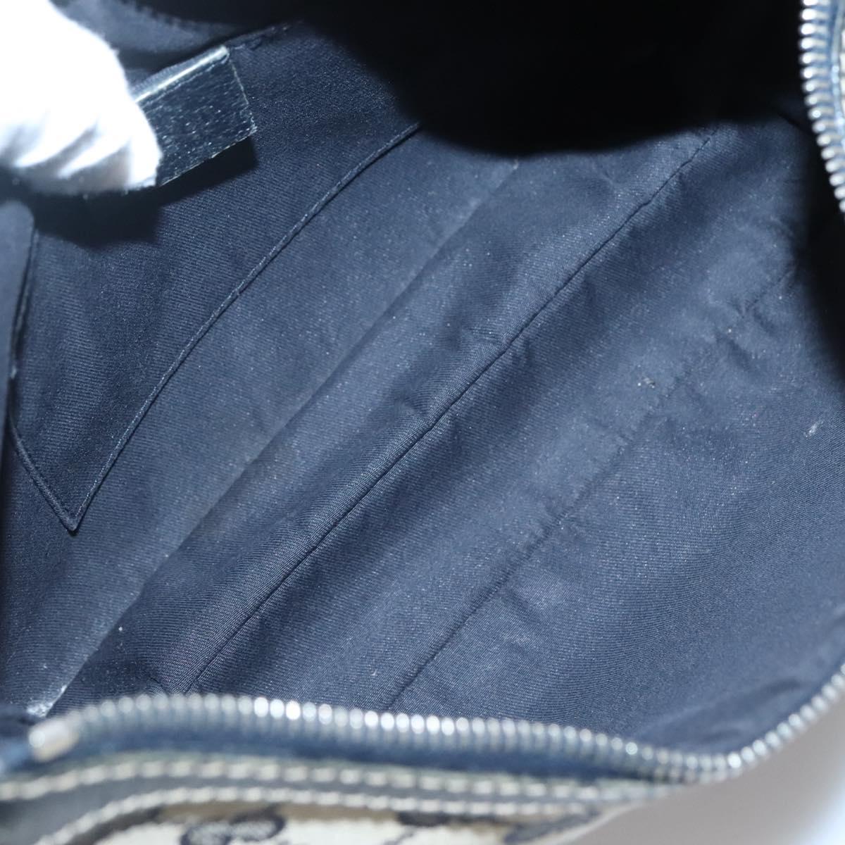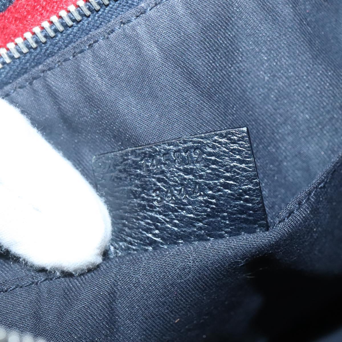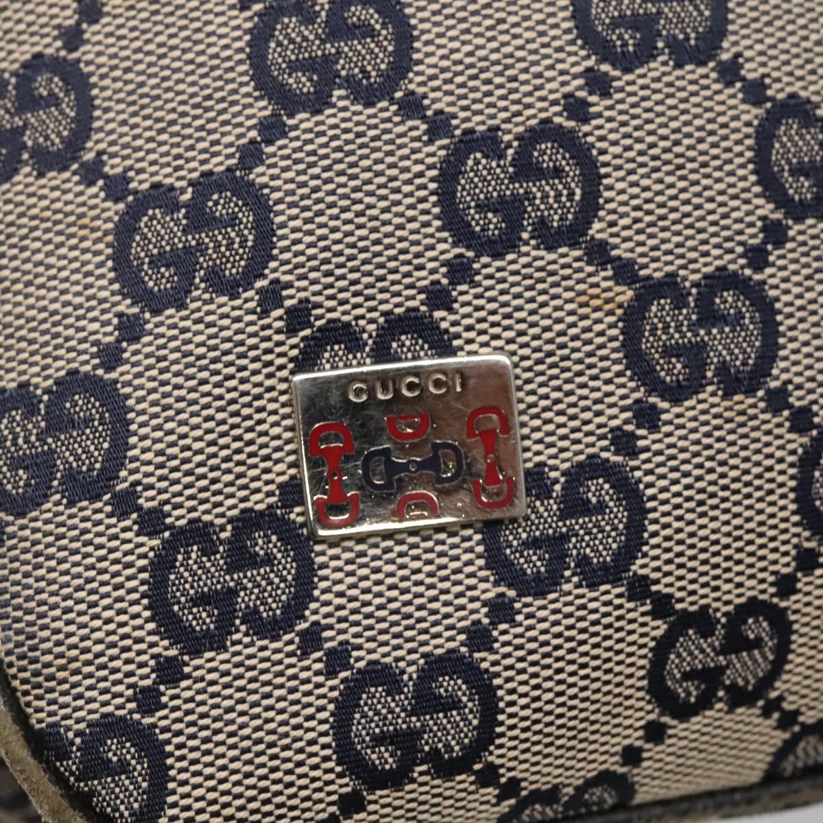 This is an authentic GUCCI Monogram Shoulder Bag crafted of dark blue Gucci GG canvas. The bag features complementary blue cowhide leather and a striped shoulder strap. This opens to a lined interior with a zipper pocket.