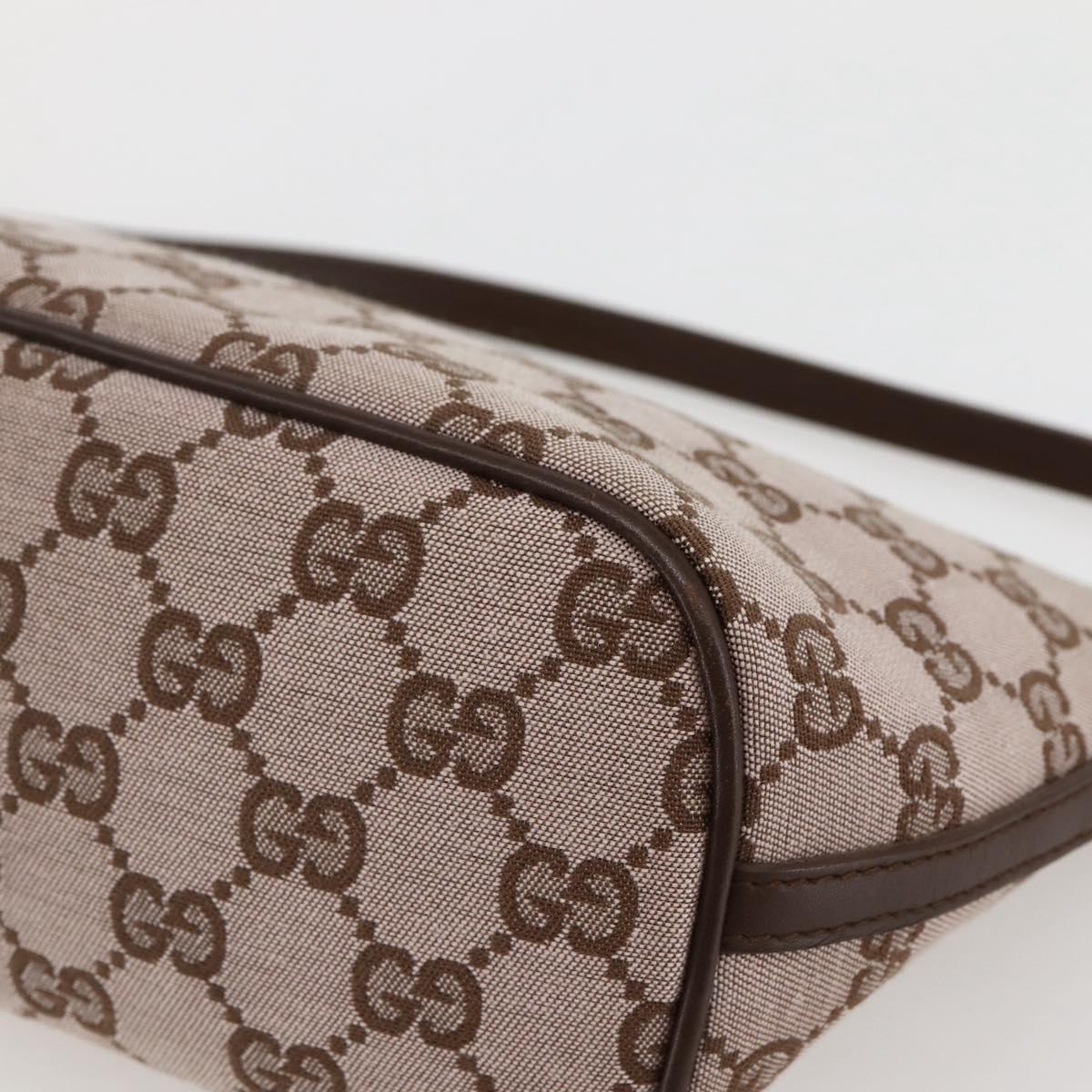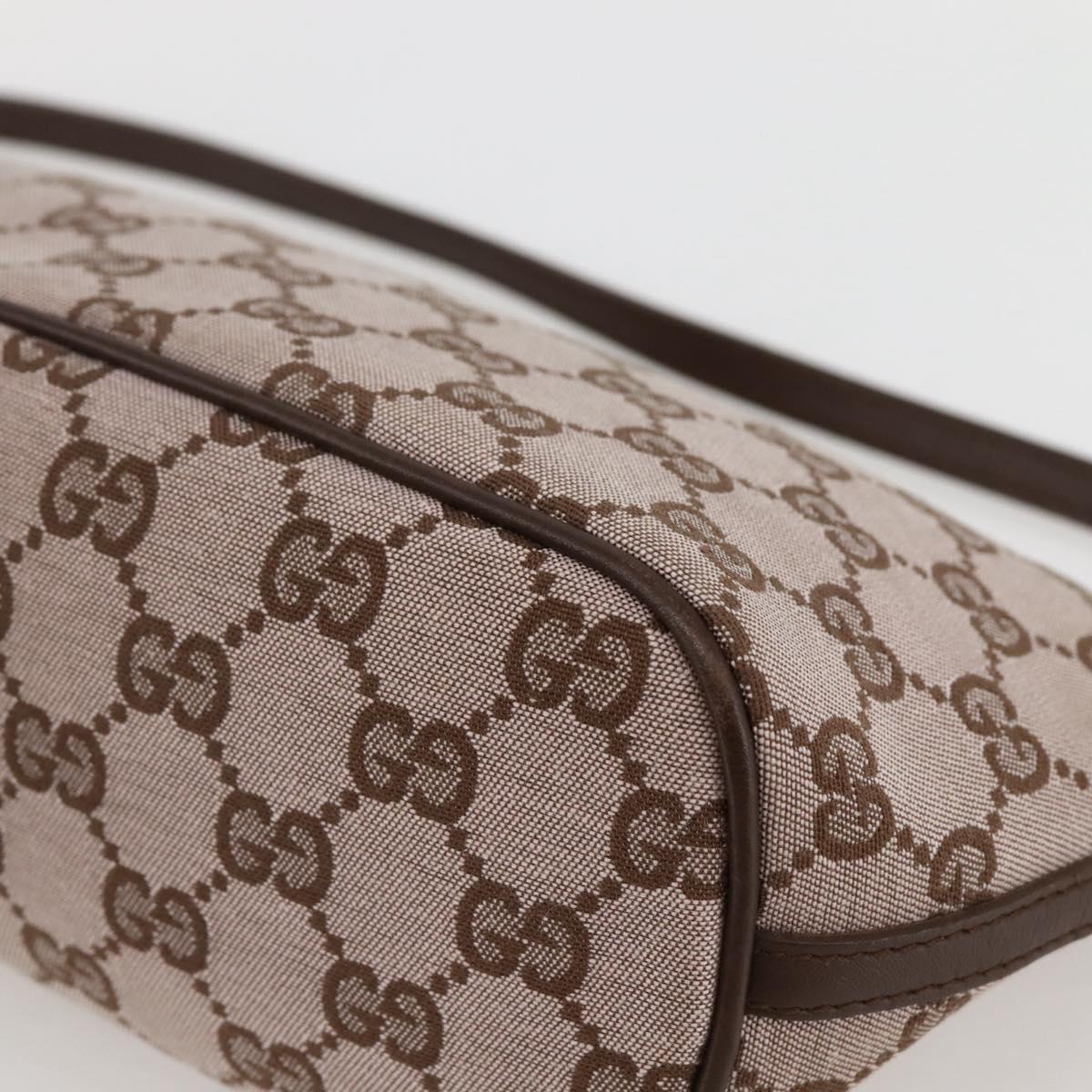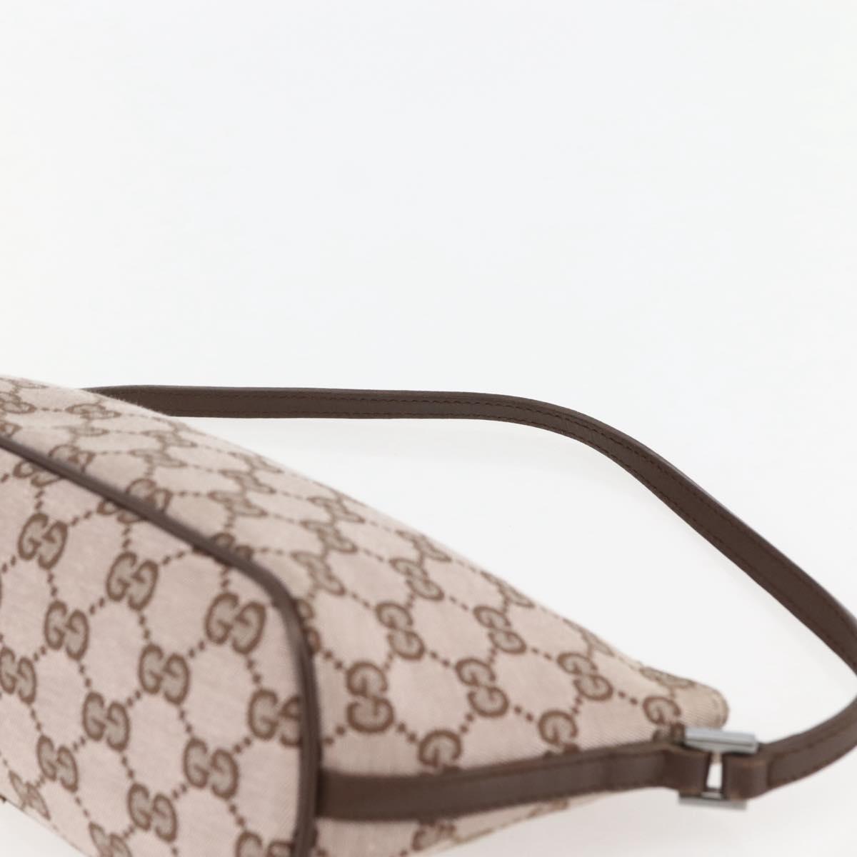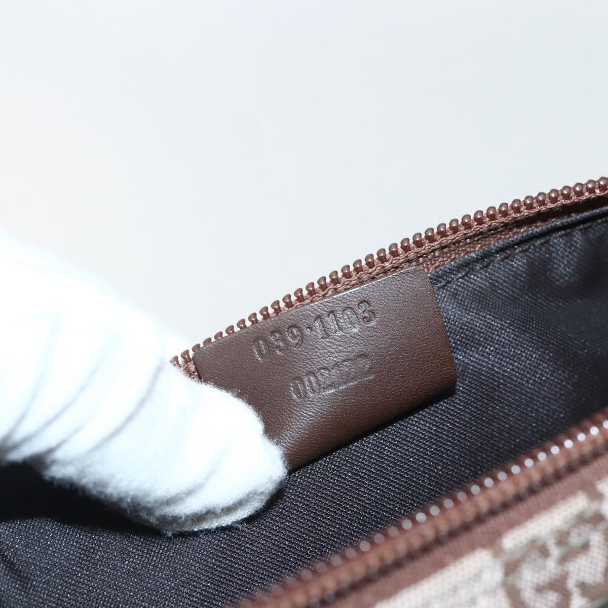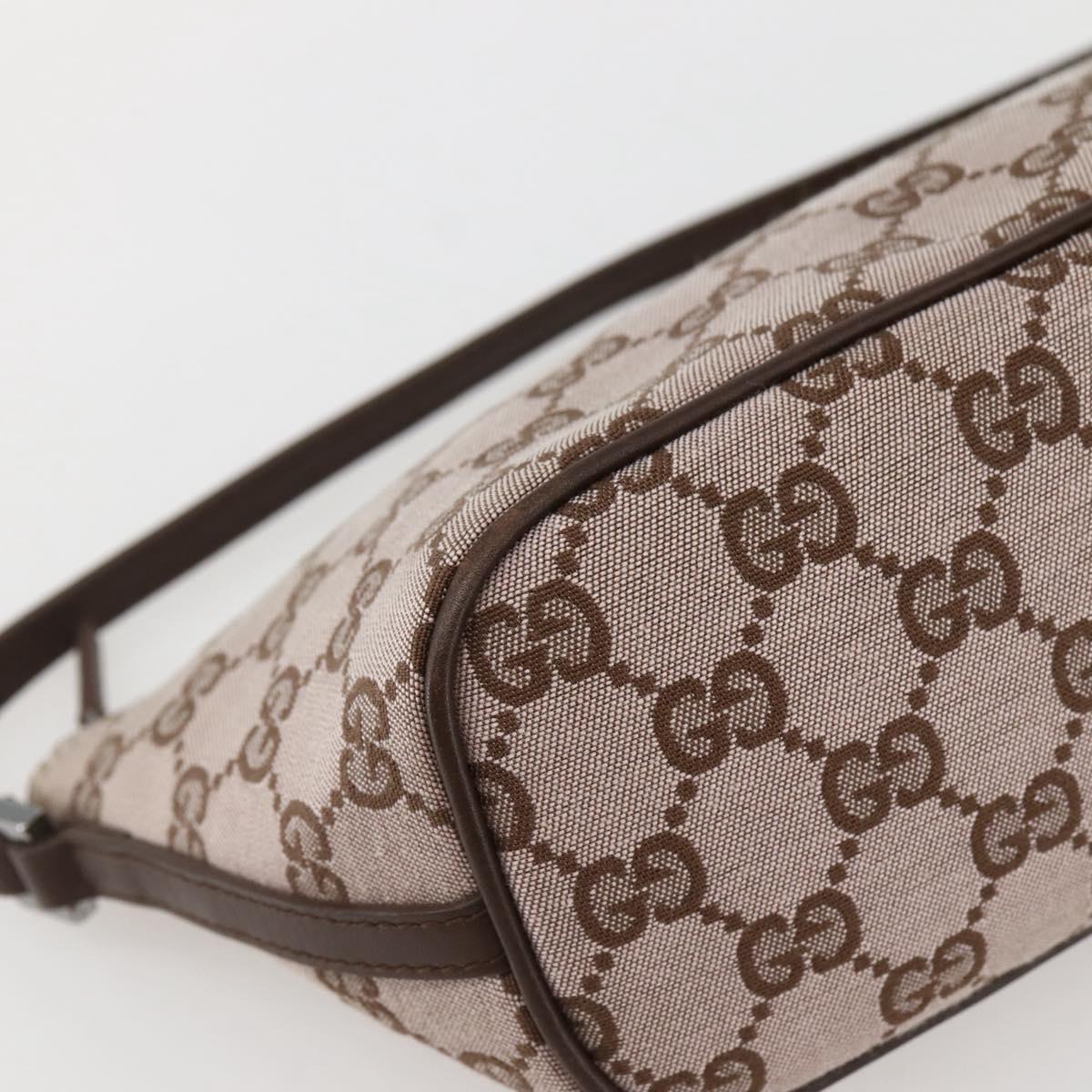 This is an authentic GUCCI Monogram Boat Pochette in Brown. This chic pochette is finely crafted of Gucci GG monogram canvas in a golden brown. The bag features a brown leather wrist strap and silver hardware. The top zipper opens to a dark gray fabric interior.