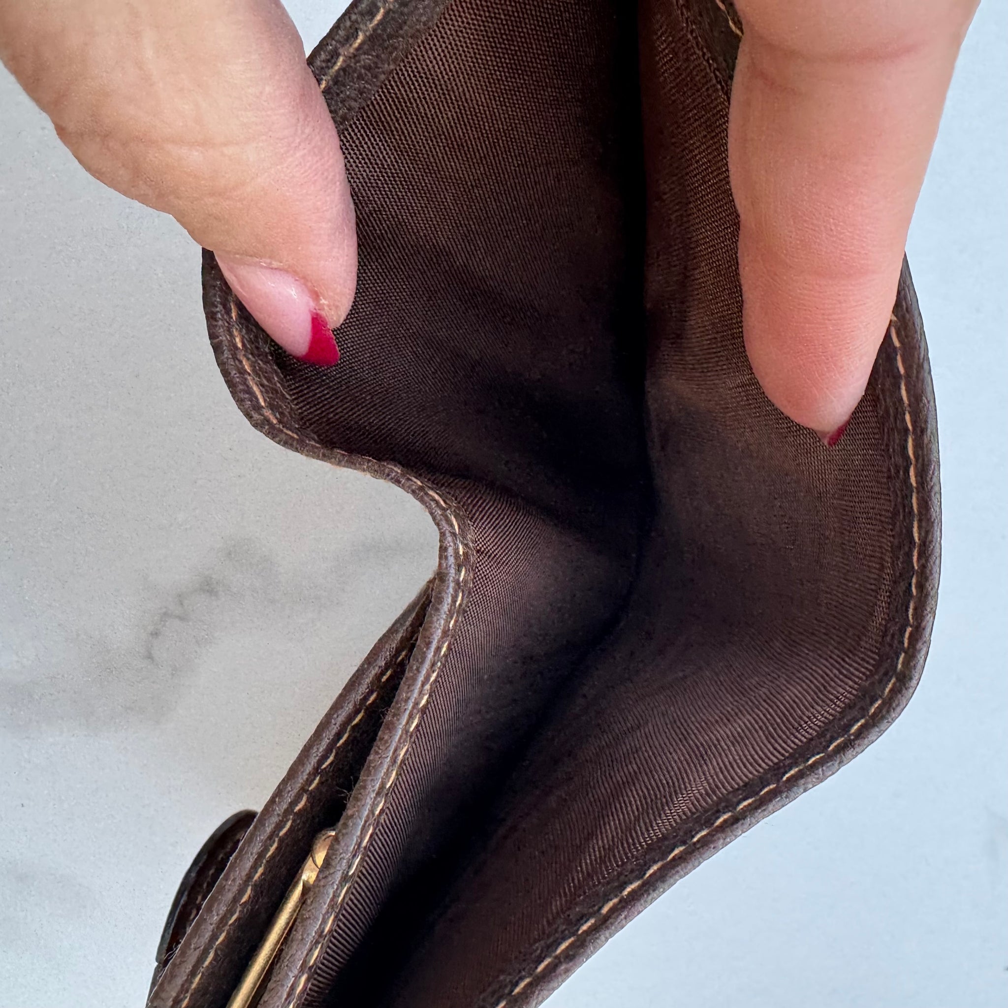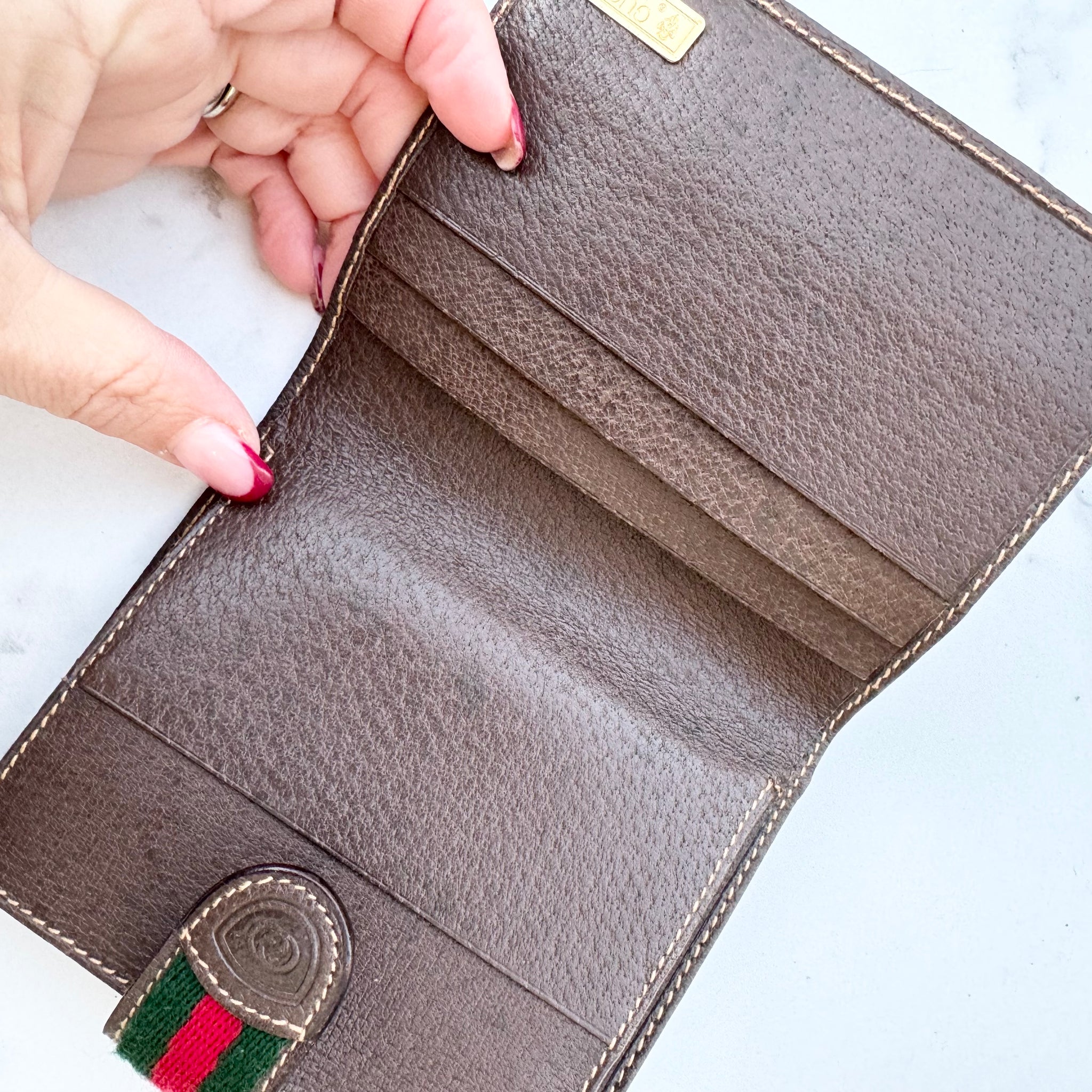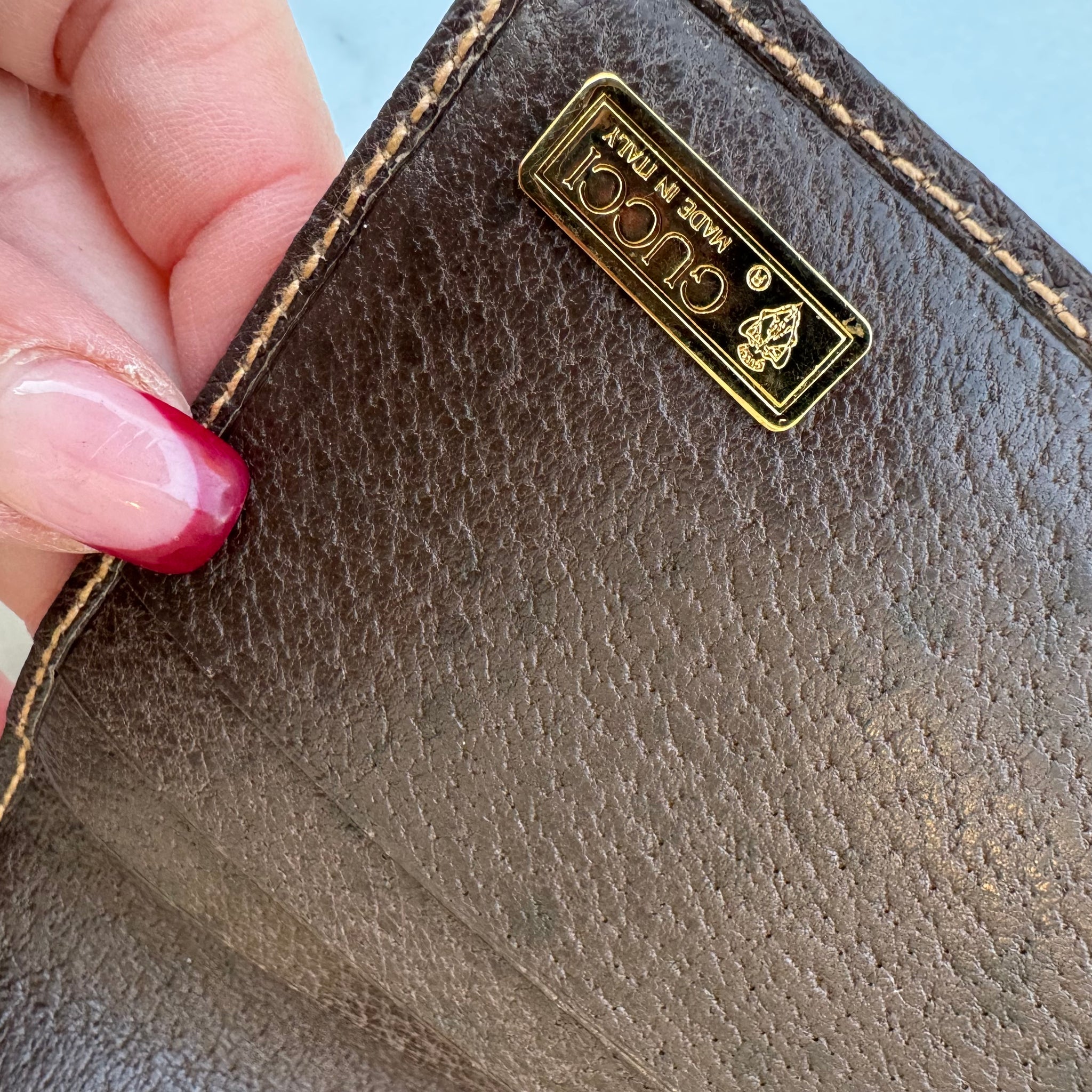 This is an authentic GUCCI Wallet crafted of supreme Gucci monogram coated canvas with brown leather trim. It opens to a leather interior with vertical card slots and pockets.