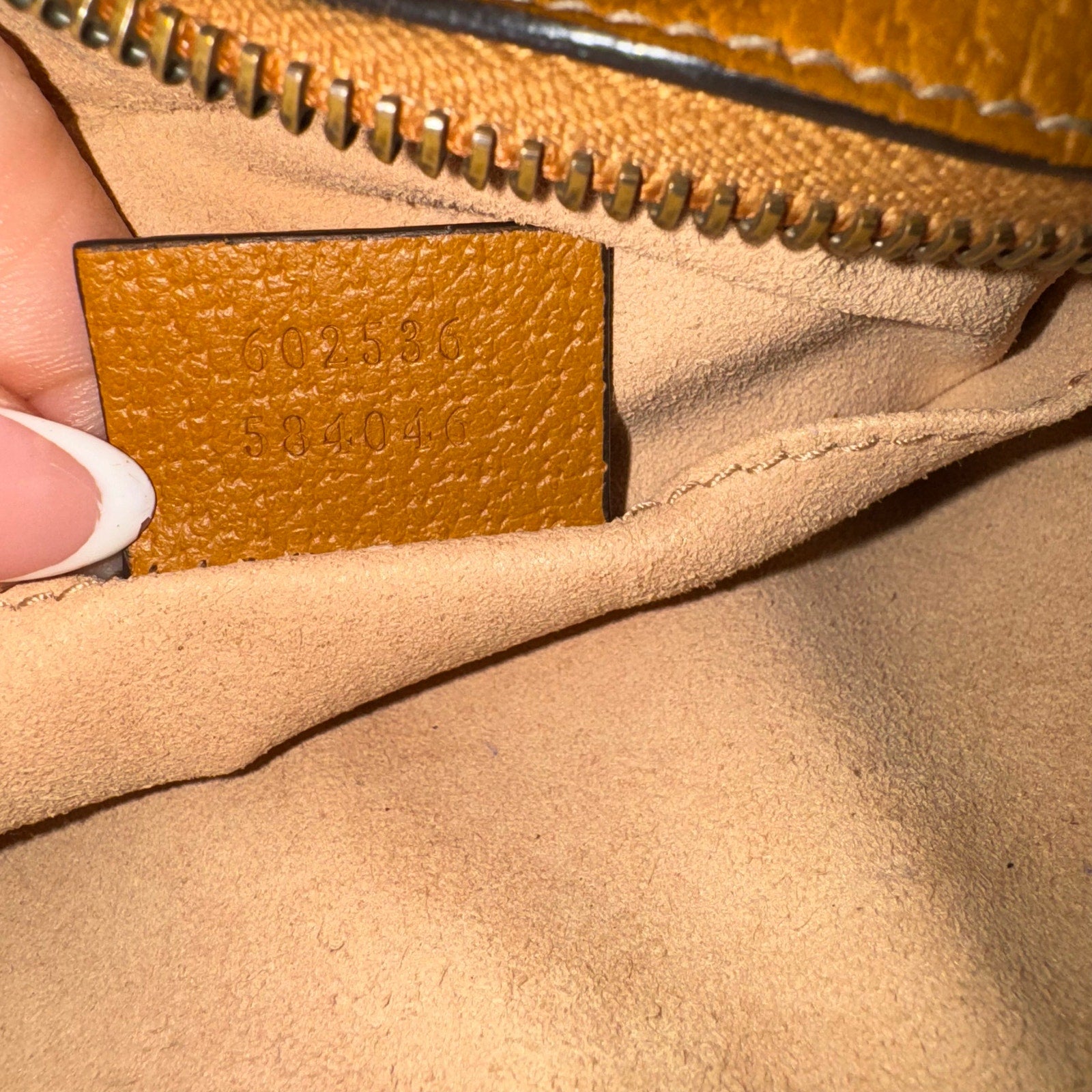 This is the authentic GUCCI X DISNEY GG Supreme Monogram Mickey Mouse Crossbody. In a collaboration with Disney for the 2020 Lunar New Year, Gucci created this vintage-inspired crossbody bag with the iconic Mickey Mouse, printed in full color alongside the classic GG print in ebony on beige monogram canvas. The bag features light brown leather trim, and antiqued gold-tone hardware. The flap opens to a beige cotton fabric interior.