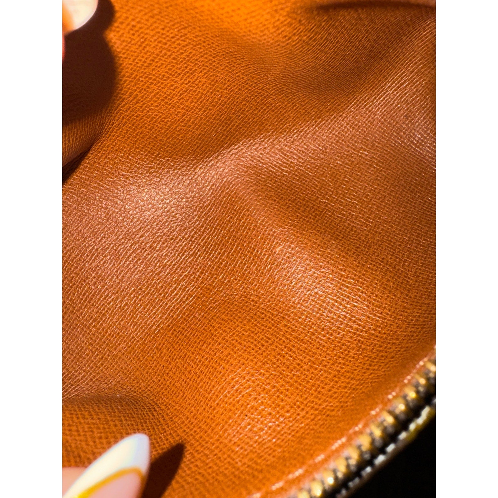 This is an authentic vintage LOUIS VUITTON Monogram Mini Papillon. The charming pochette is the smaller version of the popular Papillon handbag. It is crafted of classic Louis Vuitton monogram on toile canvas. The pochette has leather piping and a matching strap with a brass clasp end, which can be secured to your handbag. The top zips open to a terra cotta cross-grain leather interior.