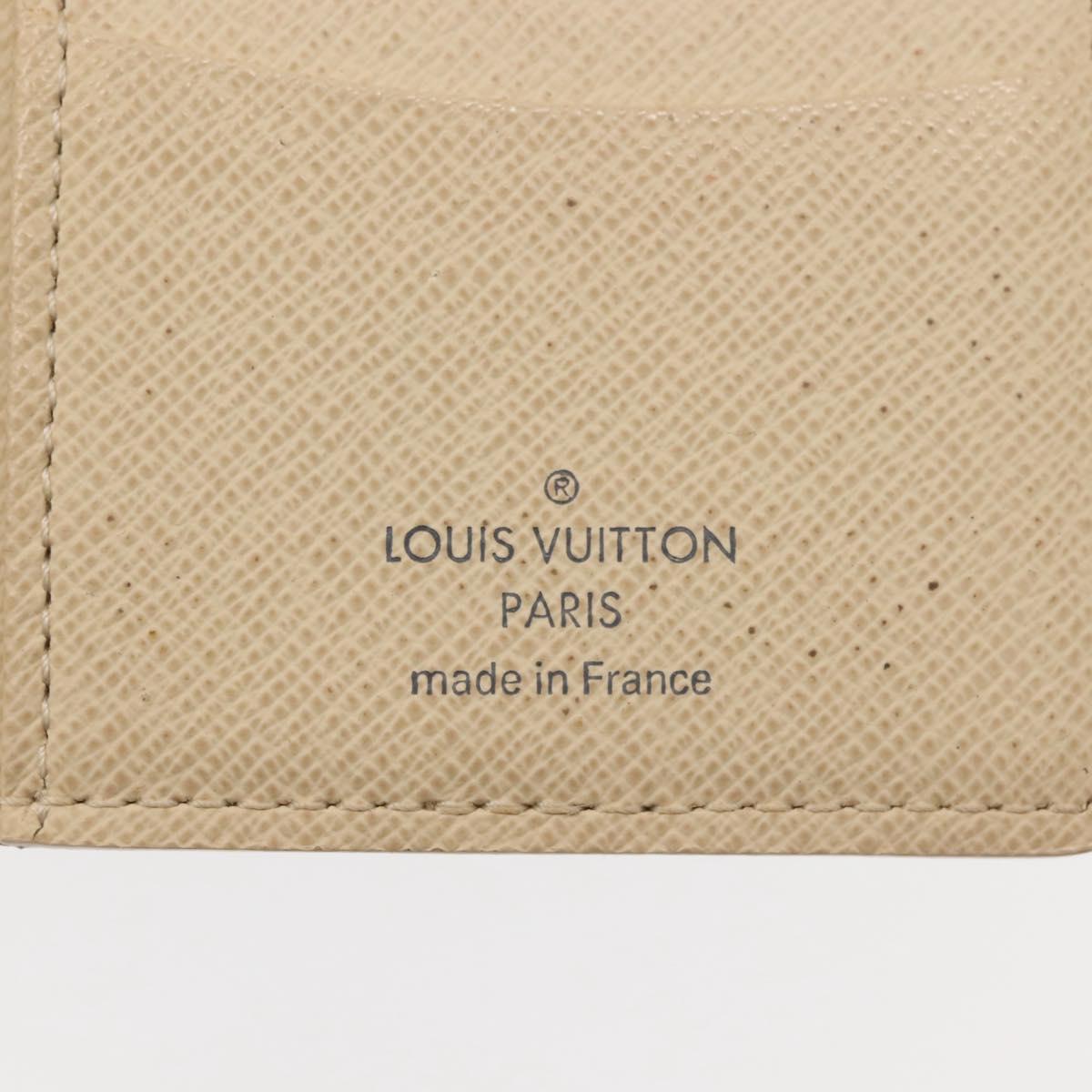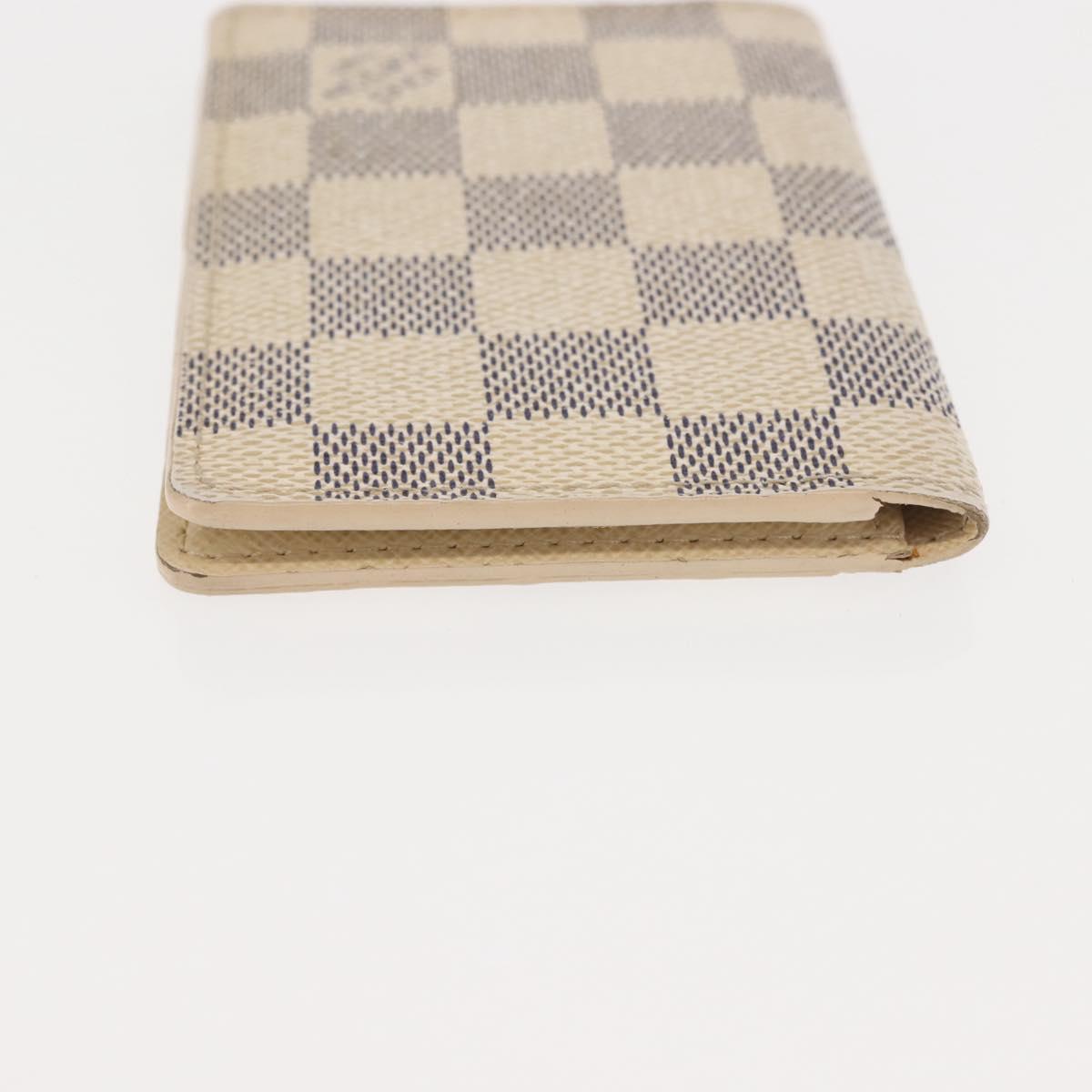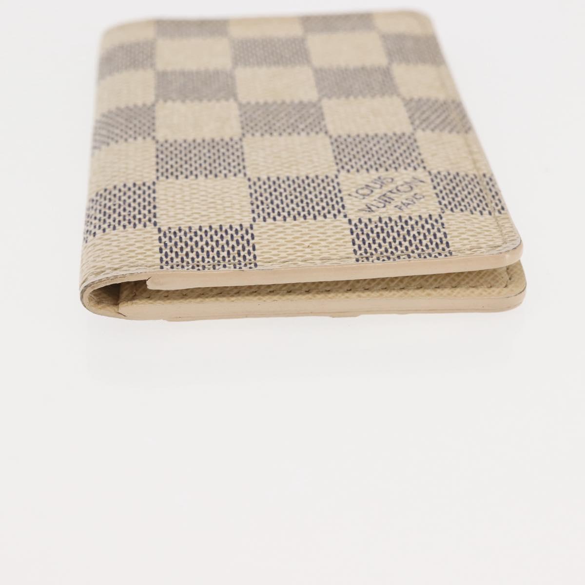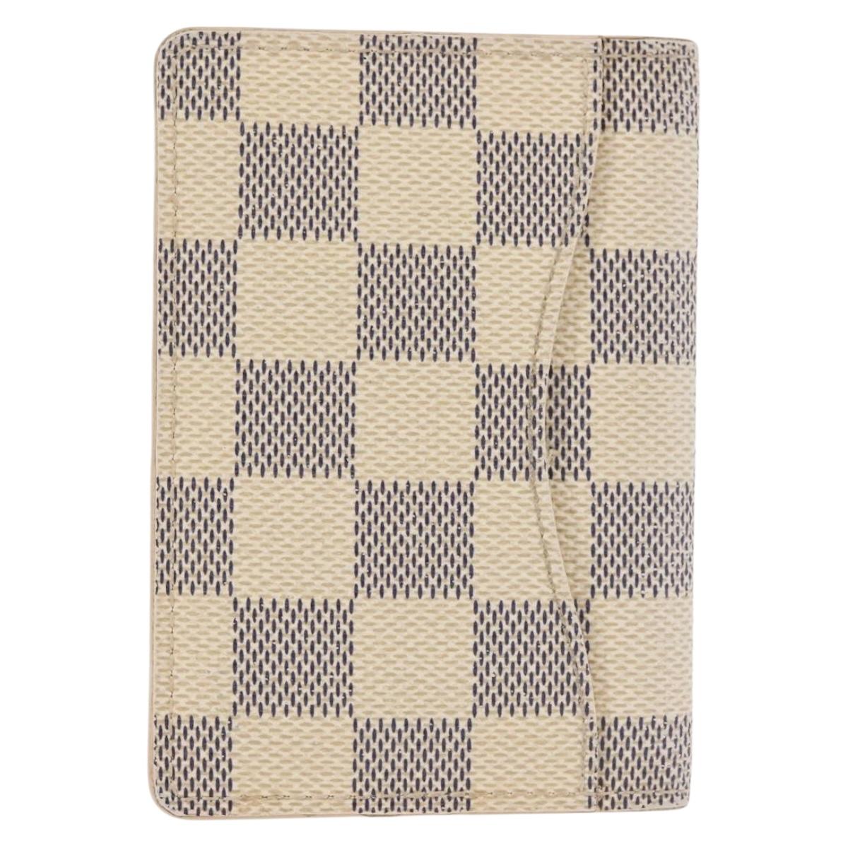 This is an authentic LOUIS VUITTON Damier Azur Pocket Organizer. The compact size wallet is crafted of Louis Vuitton damier azur patterned canvas in blue and white. The frontal flap opens to a compact interior with pockets and diagonally set credit card slots. The reverse of the wallet has a patch pocket.