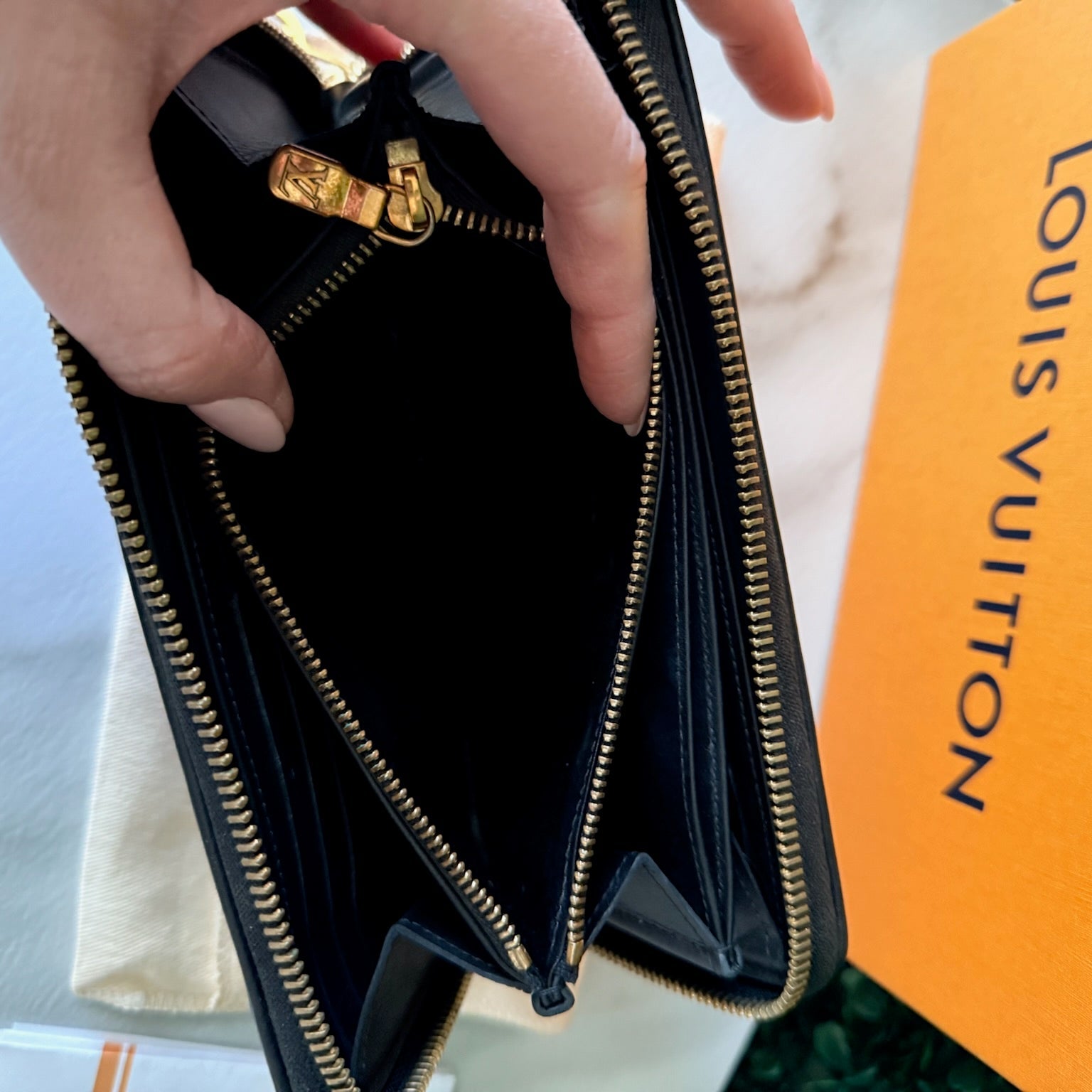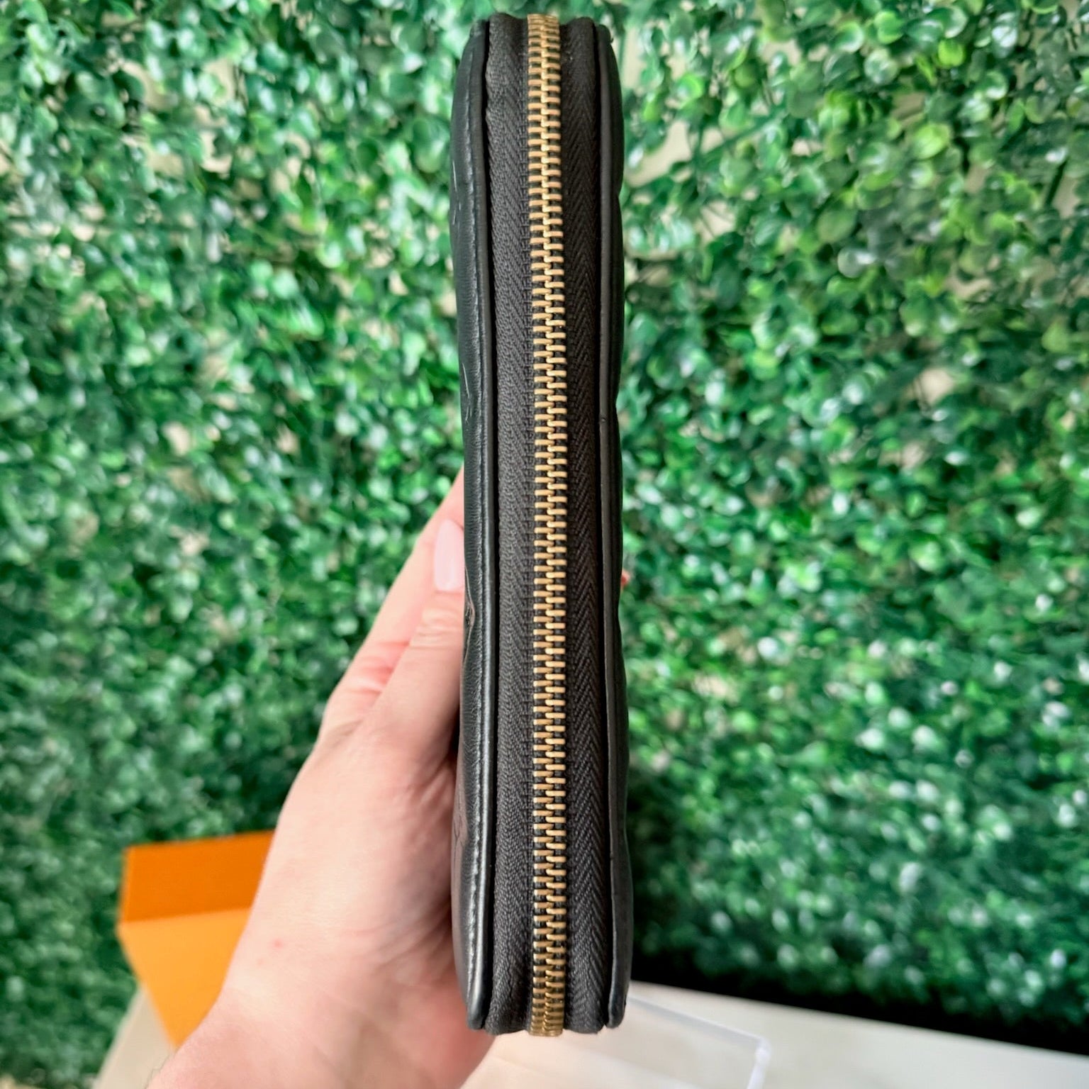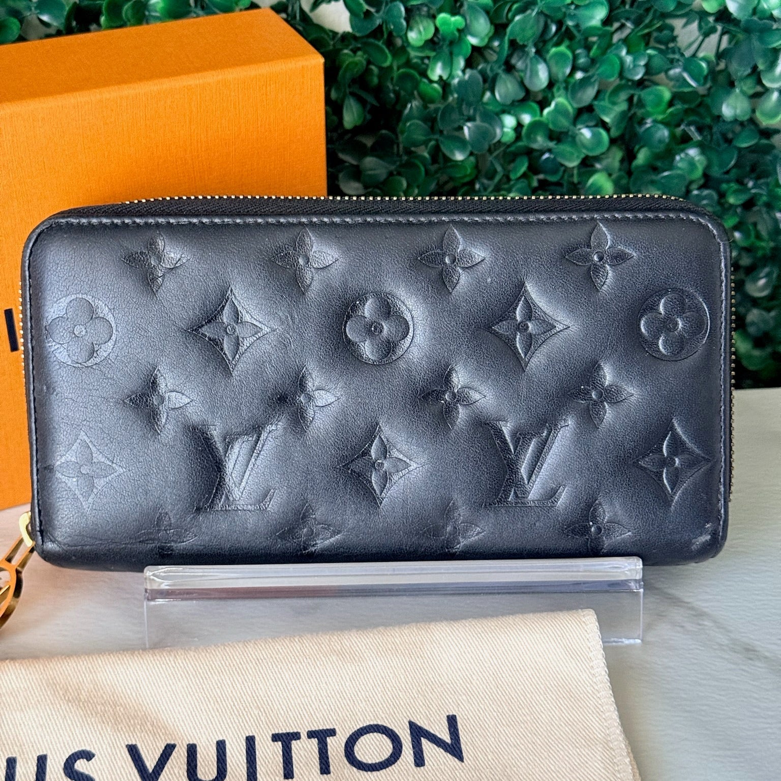 This is an authentic LOUIS VUITTON Lambskin Embossed Monogram Coussin Zippy Wallet Black. This soft and supple wallet is featured in puffy lambskin in black and is embossed with a Louis Vuitton monogram. The gold hardware zips open to a matching interior with card slots, zipper and patch pockets. Retails for $1,500