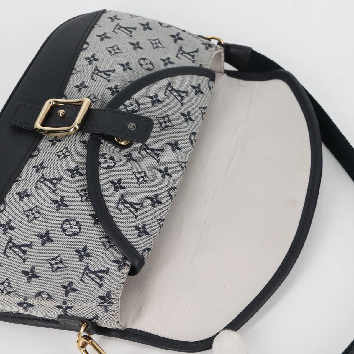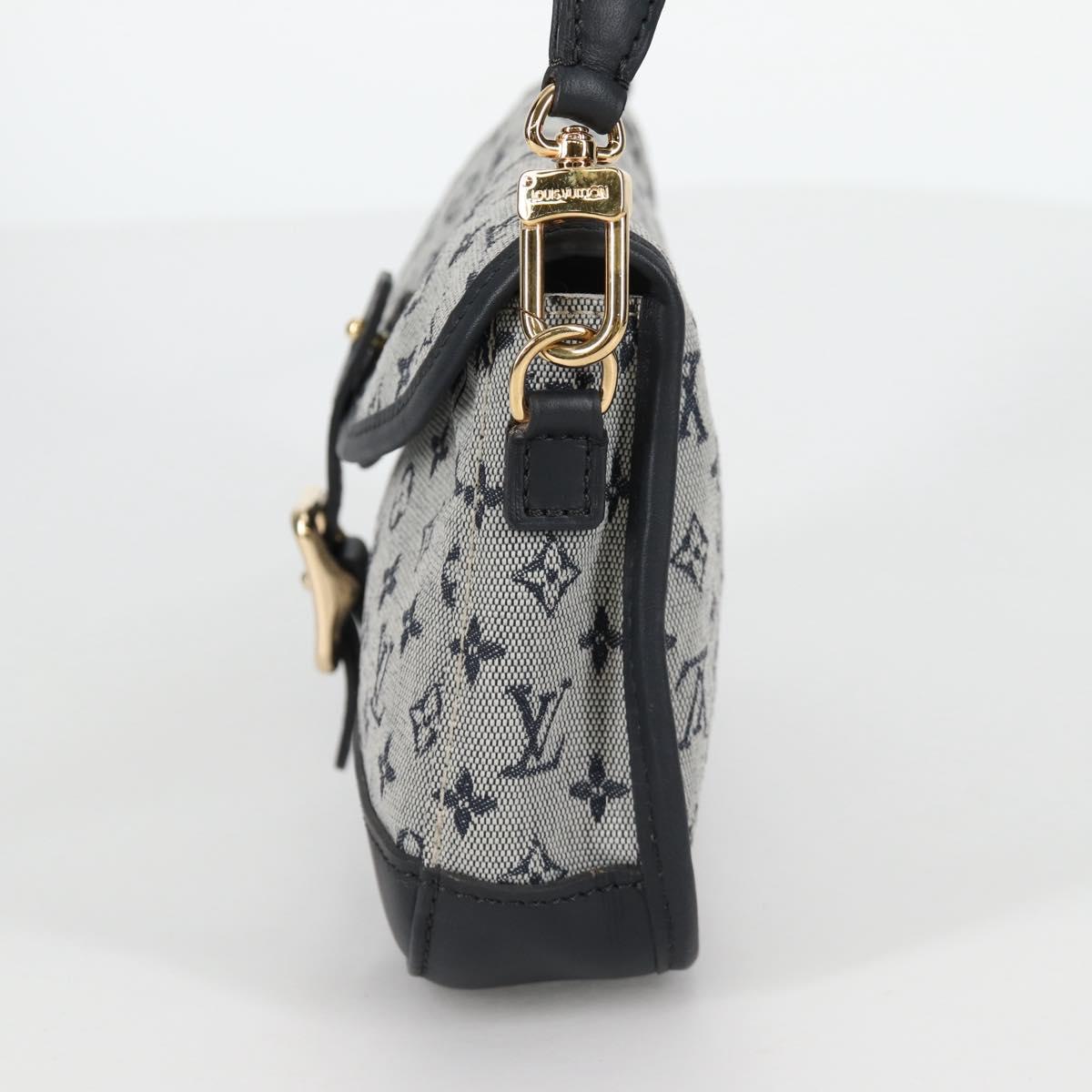 This is an authentic LOUIS VUITTON Mini Monogram Marjorie in Blue. This chic shoulder bag is crafted of Louis Vuitton mini monogram canvas in navy. The bag features complimentary navy blue leather including a solid base, a leather shoulder strap and ling for the borders including the frontal flap with a blue belt and a gold buckle. This opens to an ivory fabric interior.