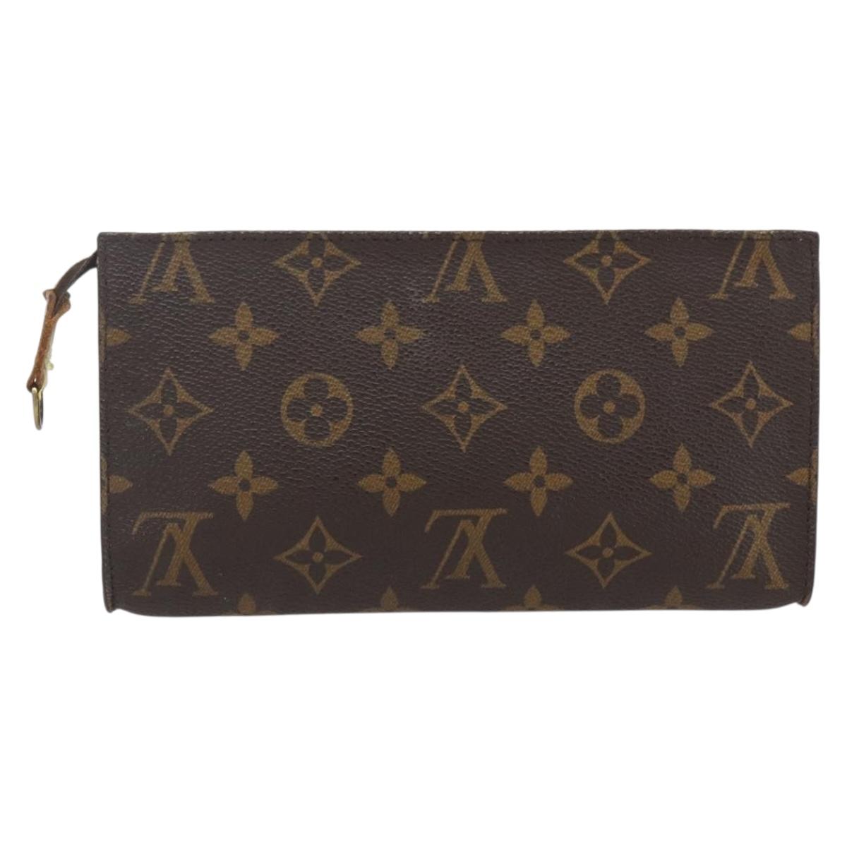 This is an authentic LOUIS VUITTON Monogram Bucket GM Pouch. The pouch is crafted of monogram coated canvas. The pouch features brass hardware and opens to a beige leather-like interior. Includes a non branded crossbody chain strap. It fits an iPhone ProMax!