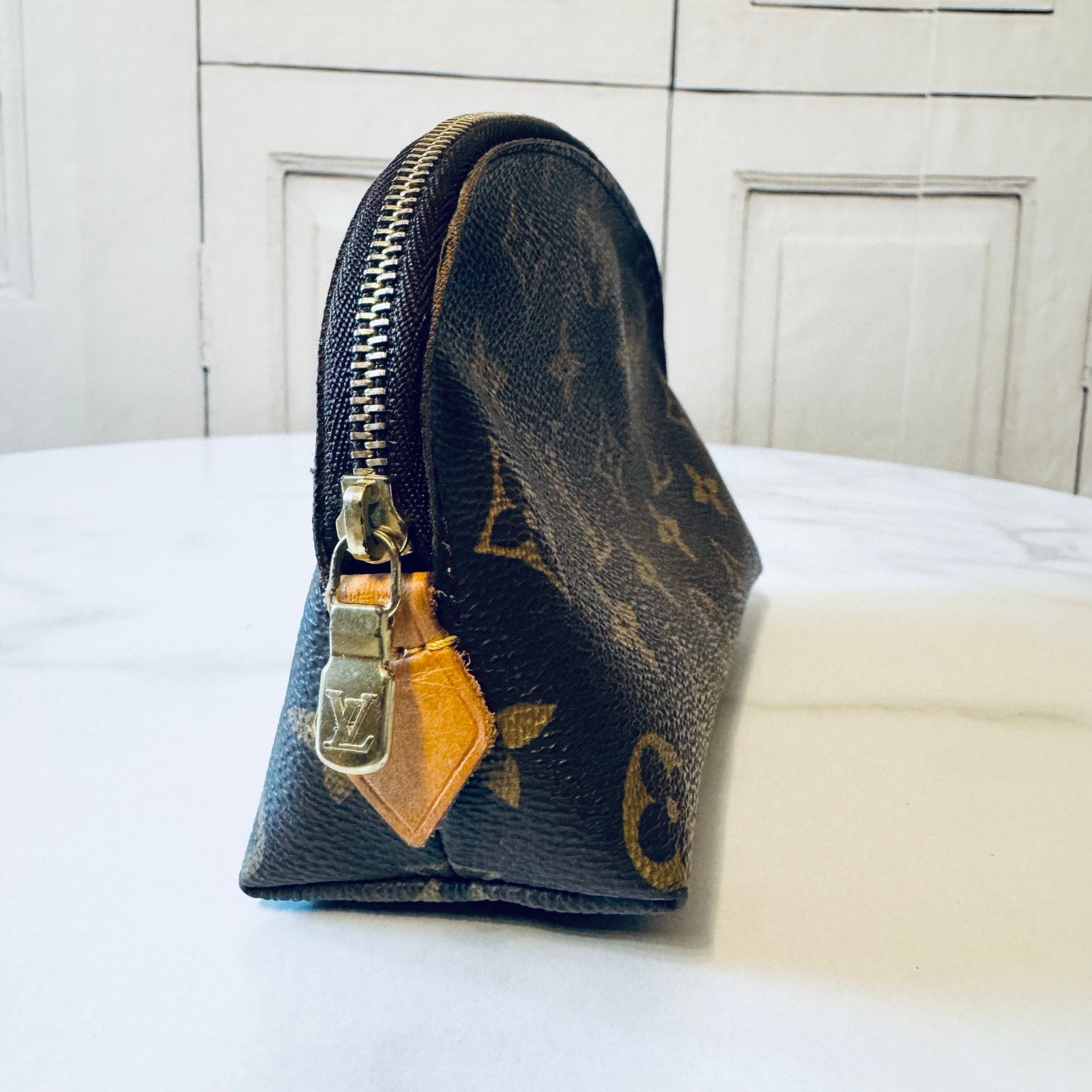 This is an authentic LOUIS VUITTON Monogram Cosmetic Pouch. This stylish pouch is crafted of classic Louis Vuitton monogram canvas. The pouch features a top zipper that opens to a textile interior with a small patch pocket.