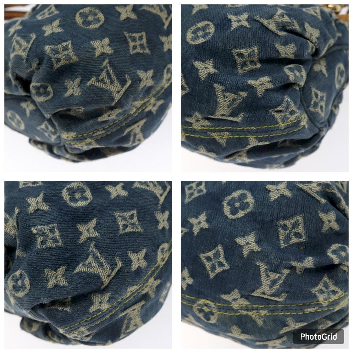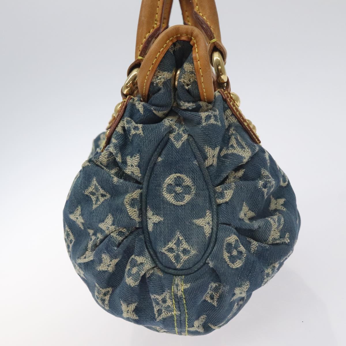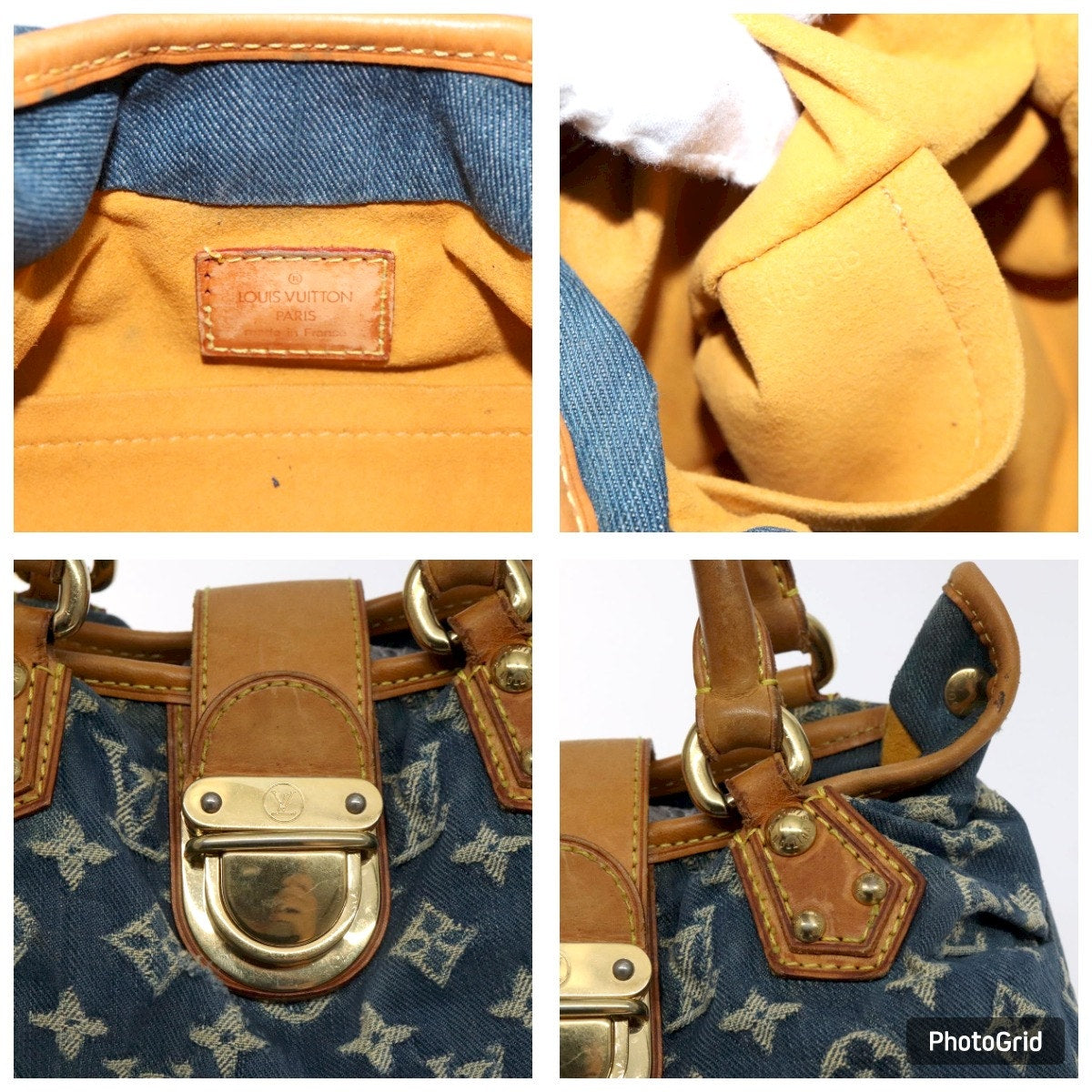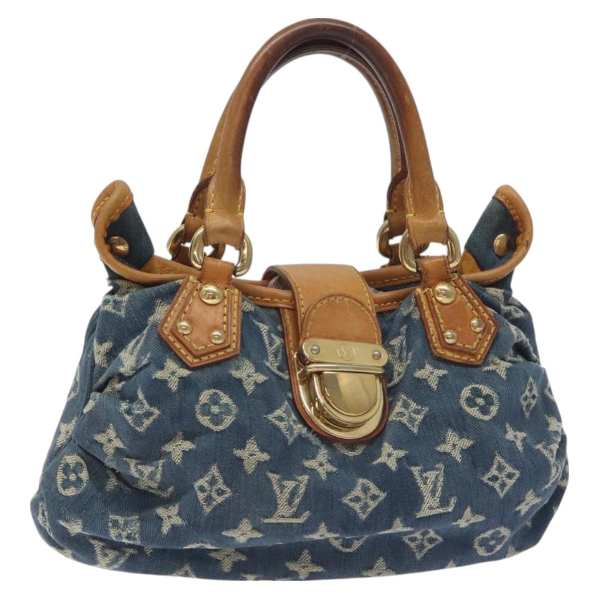 This is an authentic LOUIS VUITTON Monogram Denim Pleaty Mini. This stylish bag is crafted of Louis Vuitton monogram pleated denim with vachetta leather trim, including rolled top handles with polished brass rivets, a top crest lining, and crossover flap with gold-toned press lock. This opens to a saffron yellow microfiber interior with a patch pocket.
