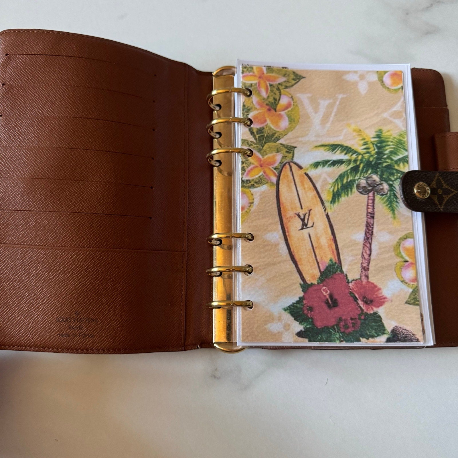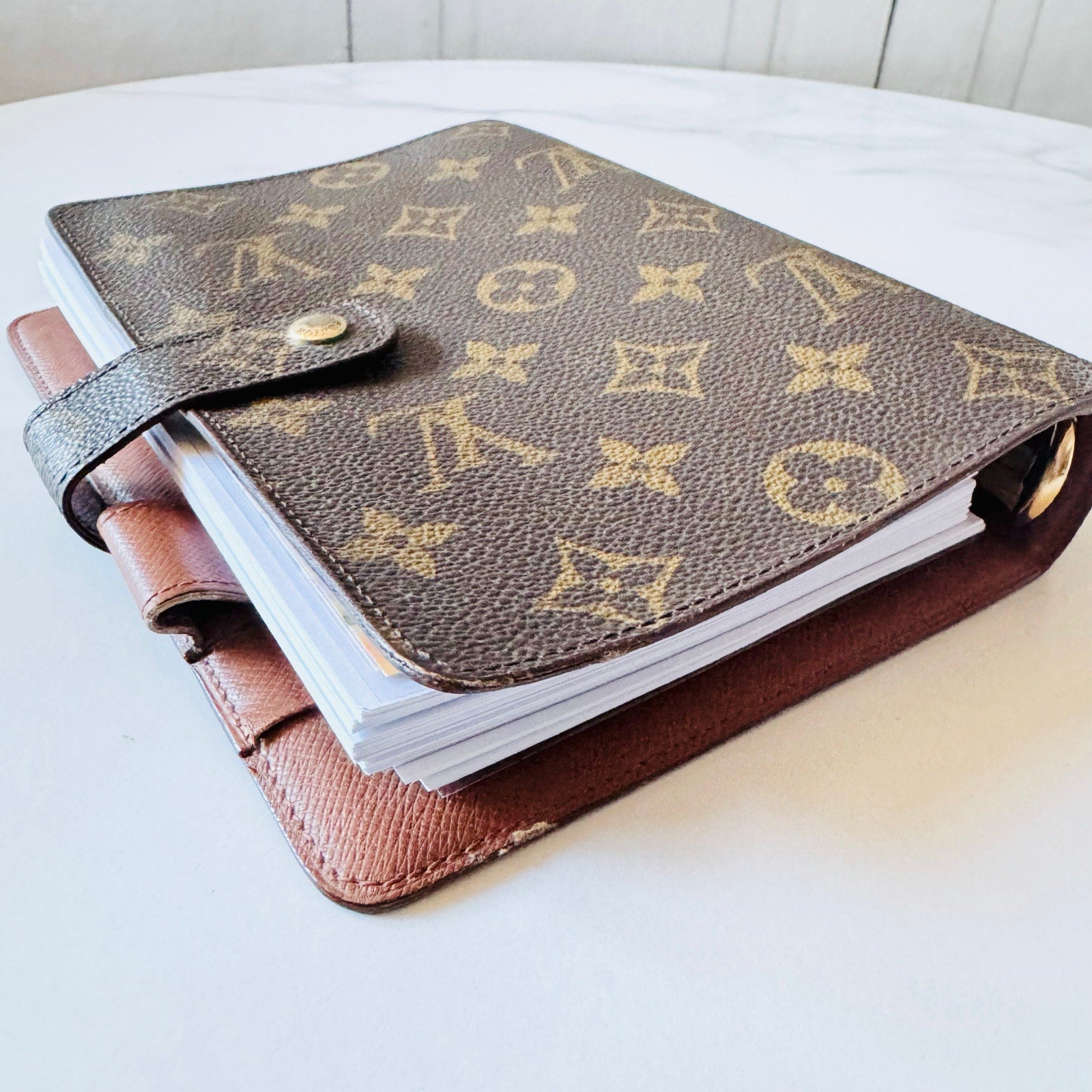 This is an authentic LOUIS VUITTON Medium Ring Agenda Cover crafted of Louis Vuitton monogram coated canvas. It features a folder style structure and a cross over polished gold snap closure. This opens to a cross grain leather interior. Includes custom designed full color dashboards and inserts.