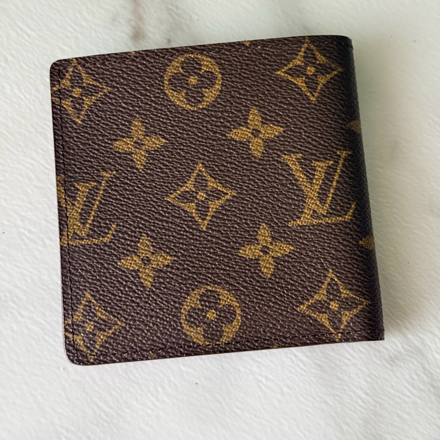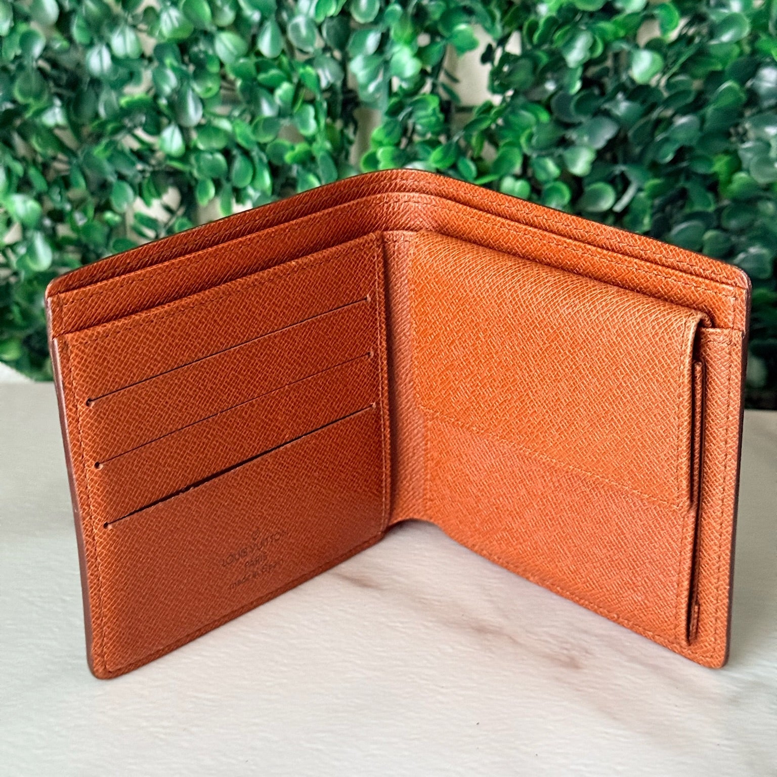 This is an authentic LOUIS VUITTON Monogram Wallet finely crafted of classic Louis Vuitton monogram coated canvas. The wallet opens to a terra-cotta colored cross-grain leather interior with card slots, patch pockets, and a bill compartment.  Includes box.