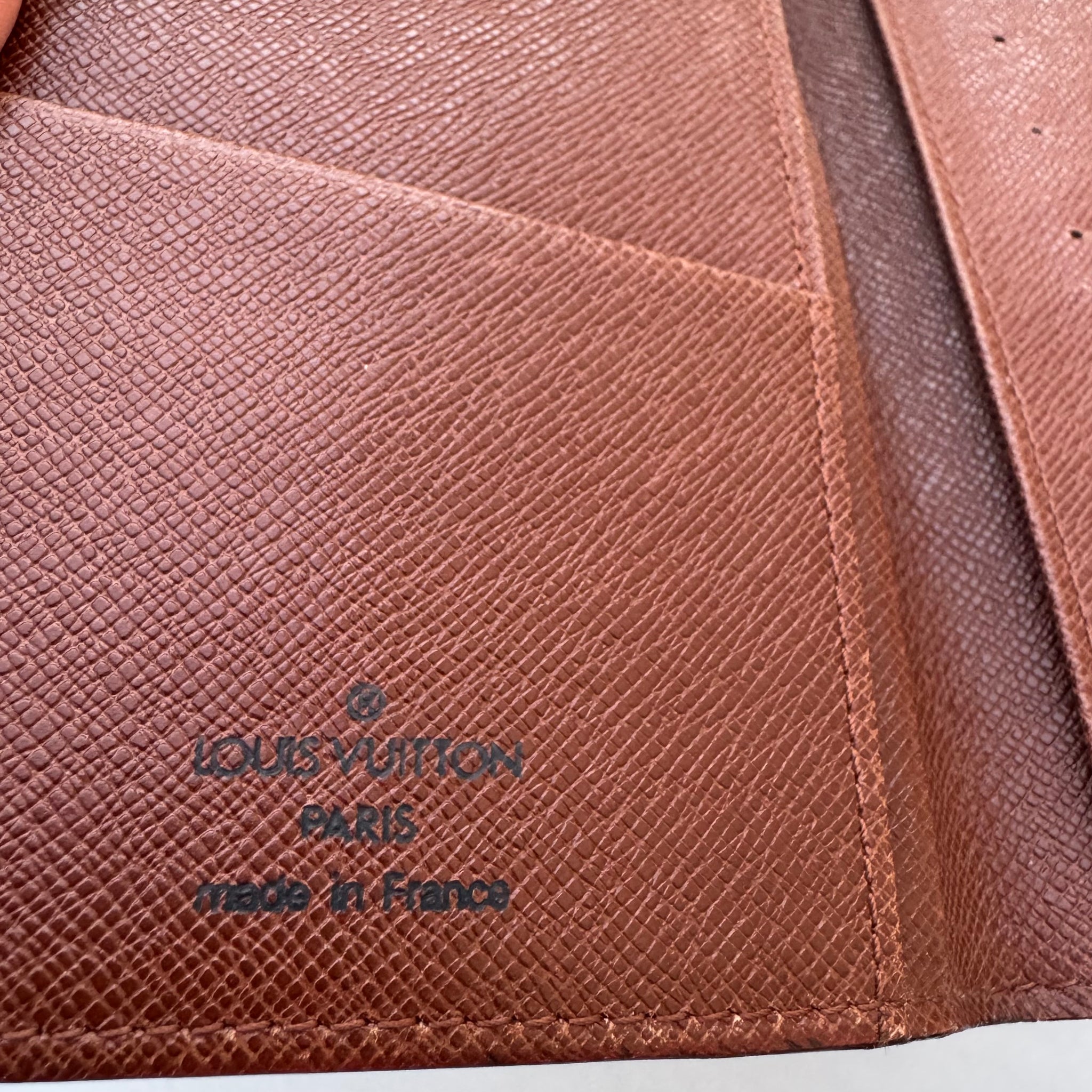This is an authentic LOUIS VUITTON Monogram Porte Valeurs Organizer Wallet. This stylish vertical organizer wallet is crafted of Louis Vuitton monogram toile canvas. This opens to an interior of terracotta cross-grain leather with card slots, patch pockets and a bill slot. This will be an excellent compliment to a briefcase or Louis Vuitton monogram handbag to help you manage your affairs with the style of Louis Vuitton.