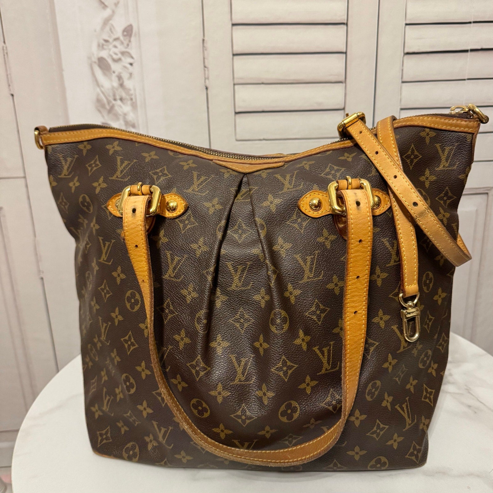 This is an authentic LOUIS VUITTON Monogram Palermo GM. This stylish tote is crafted of monogram coated canvas with vachetta leather trim and adjustable shoulder straps with gold-toned hardware. The top zipper opens to a cocoa brown fabric interior with patch pockets.