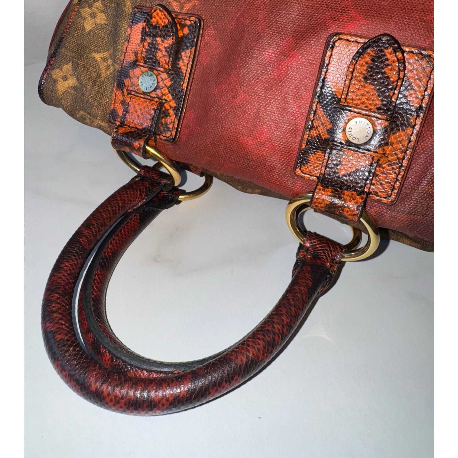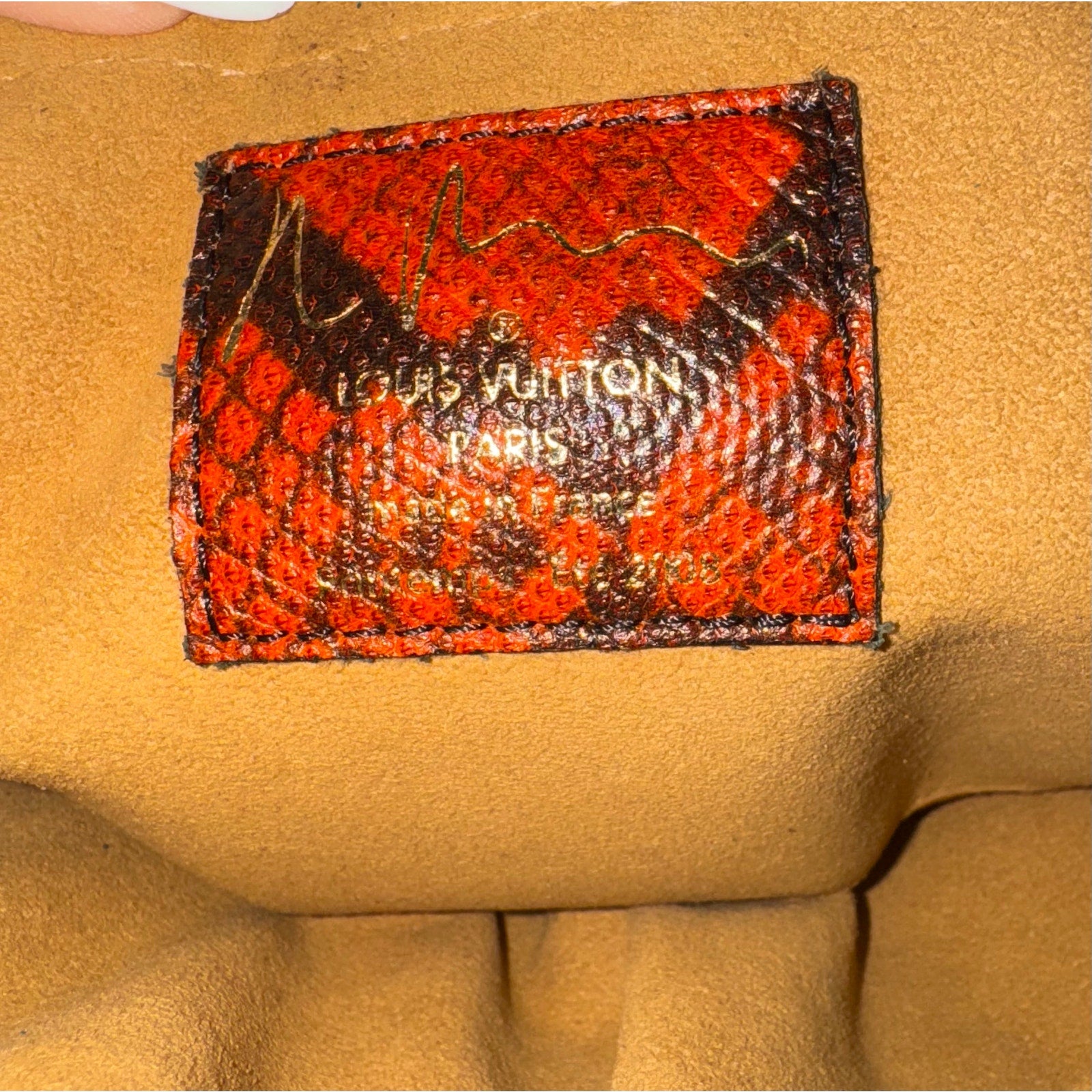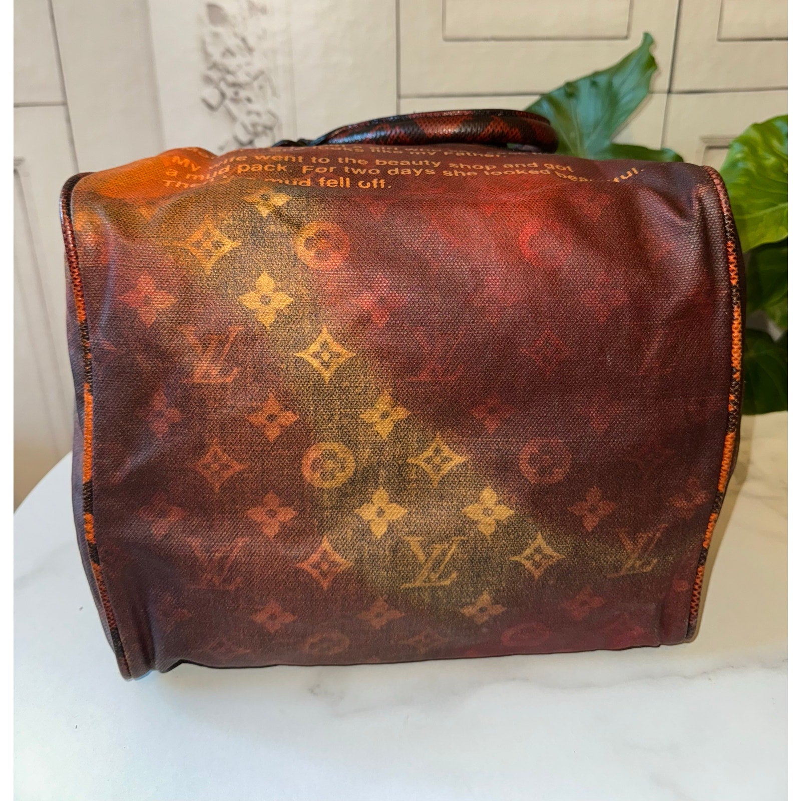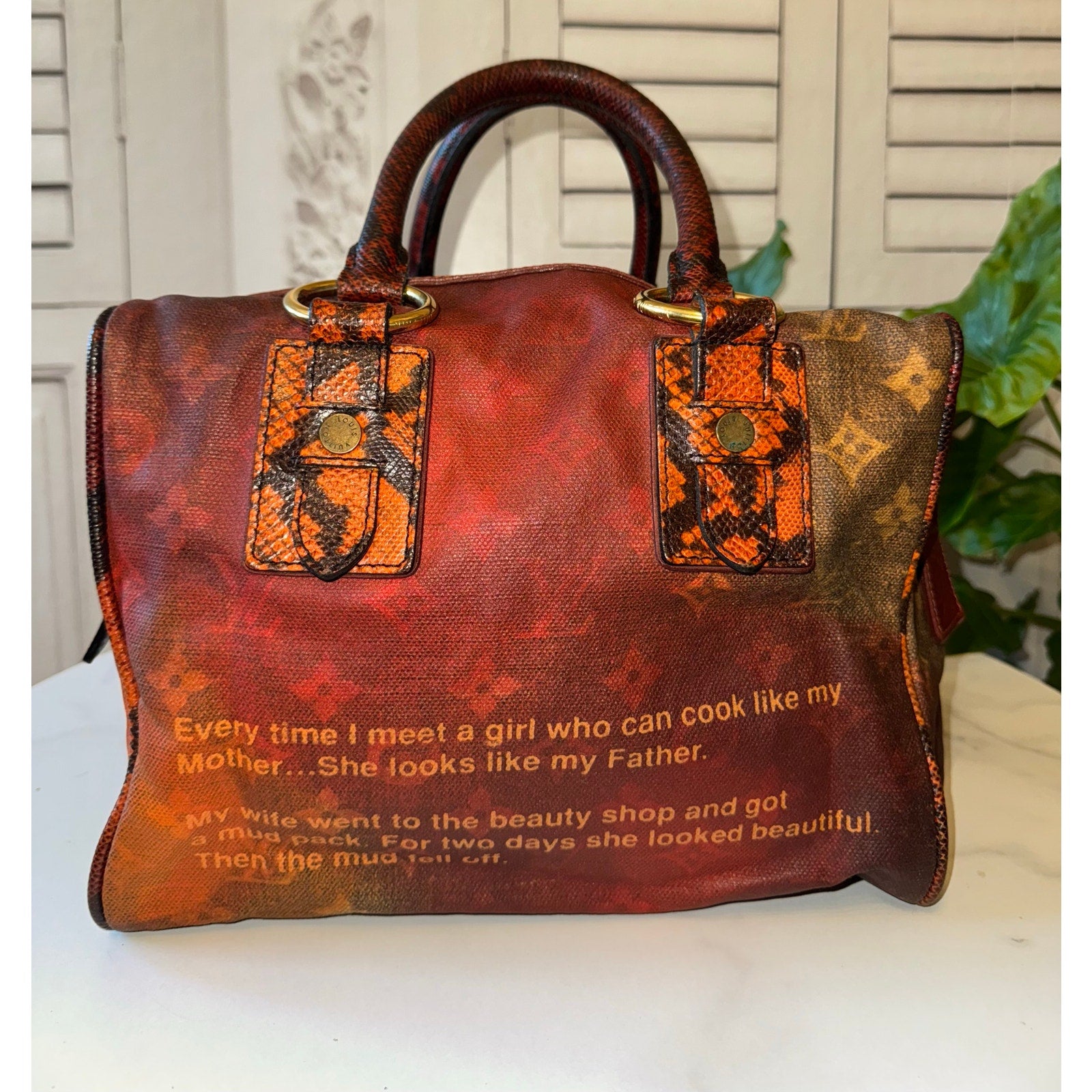 This is an authentic LOUIS VUITTON Richard Prince Mancrazy Jokes Bag. This exceptional tote is created of classic Louis Vuitton monogram coated canvas and an additional layer of bold and bright graffiti style colors with printed jokes. The bag features rolled snakeskin top handles and trim with polished brass hardware. The top features two zippers that each open to a microfiber interior with patch pockets.
